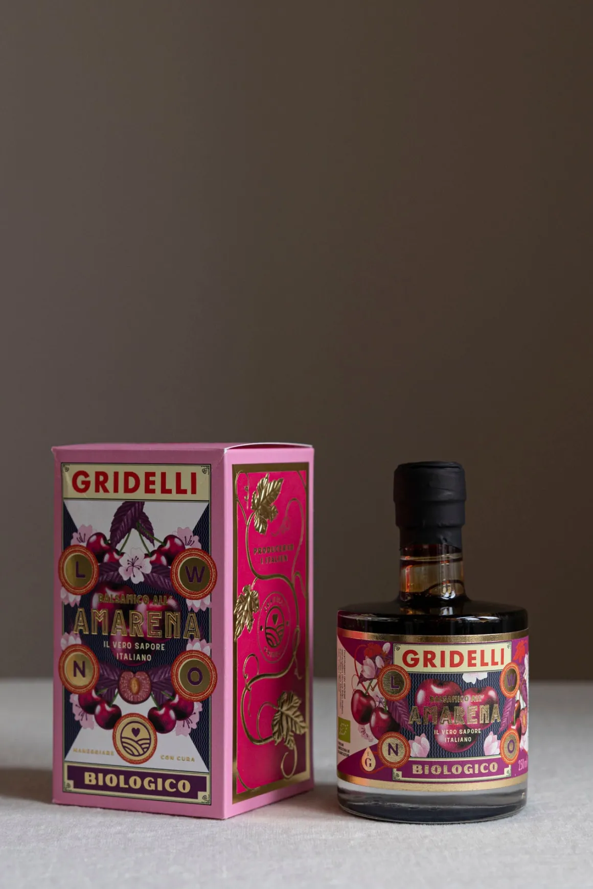 Økologisk Balsamico All´Amarena, fra svenske Gridelli, er laget av økologiske druer fra Emilia-Romagna og smaksatt med kirsebær. Lagret på kirsebær- og eikefat, er den ren og fri for kunstige fargestoffer eller tilsetningsstoffer. Ta maten til nye høyder med denne allsidige eddiken, perfekt til salater, oster, grillet kjøtt, eller til og med dryppe over vaniljeis og jordbær.