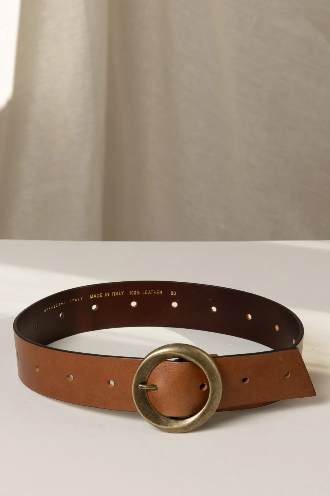 Belte i skinn fra Sergio Gavazzeni. Beltet har hull langs hele lengden, og har en oval bronsegalvanisert spenne. Det er håndvokset, noe som gir det den særegne slørede effekten. Sergio Gavazzeni er anerkjent for sin høye kvalitet, så Azalea-beltet er en tidløs investering som vil bli en fast del av garderoben din, år etter år.
