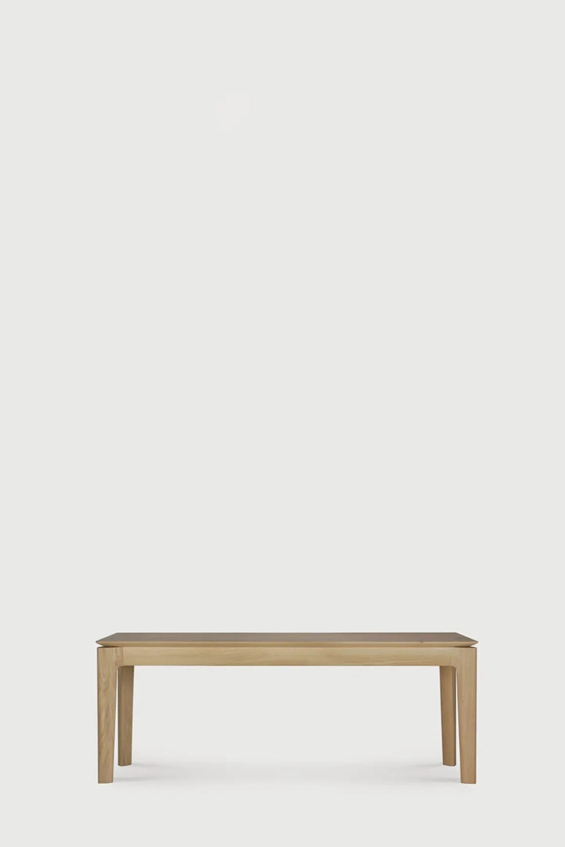 Bok benk i oljet eik fra Ethnicraft, designet av Alain van Havre. Benken har den perfekte balanse mellom skulpturell eleganse og solid håndverk, med et stødig og moderne uttrykk i lunt, oljet eiketre. Perfekt i kombinasjon med Bok spisebord, enten hjemme eller hytta. Benken kommer i 4 forskjellige størrelser og også i sortlakkert eik.