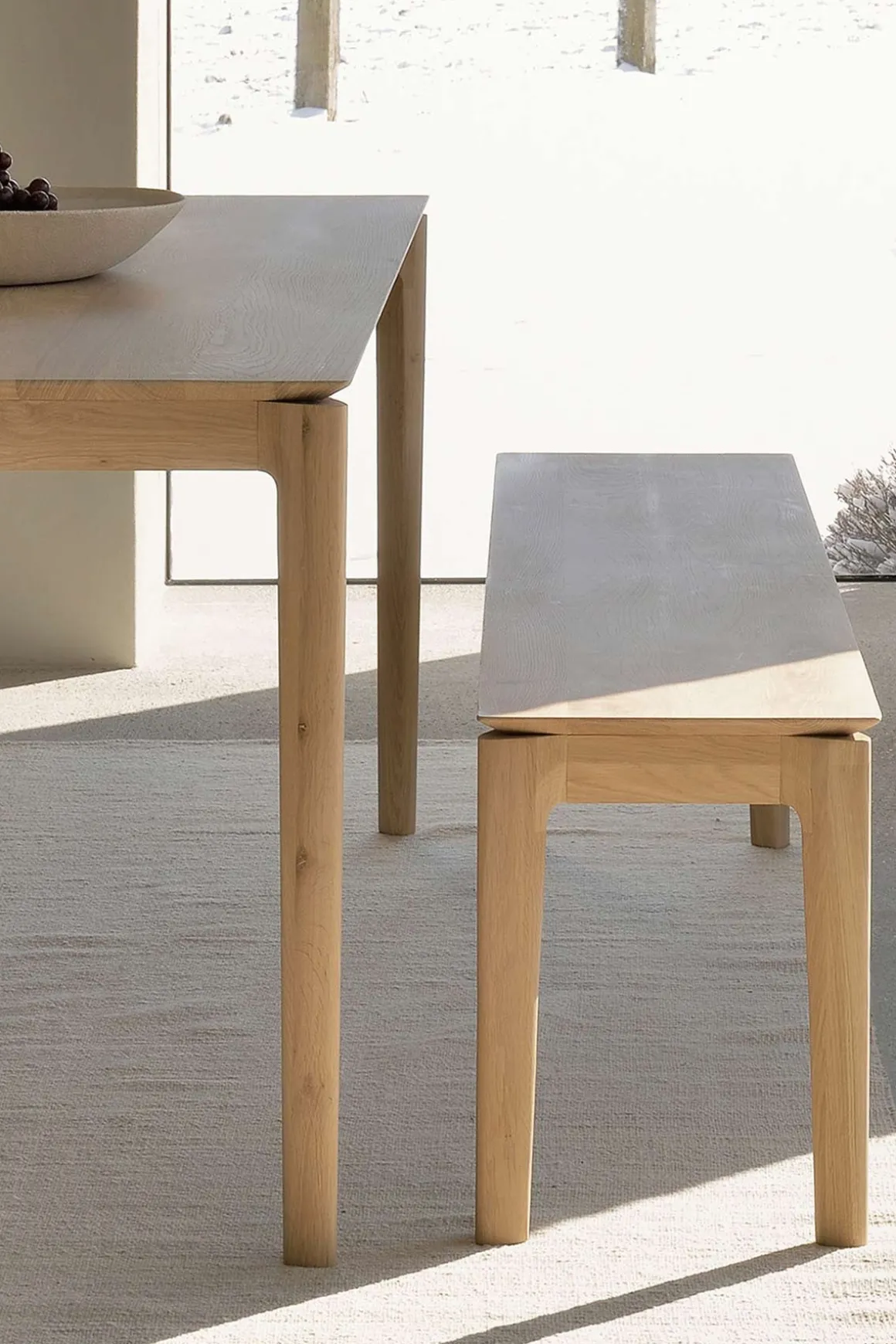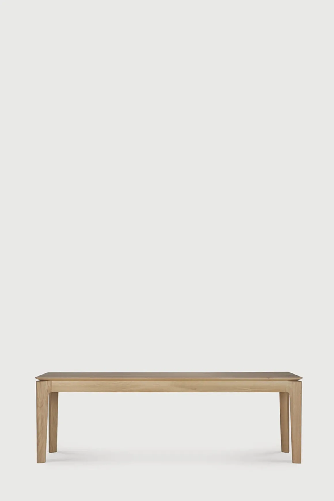 Bok benk i oljet eik fra Ethnicraft, designet av Alain van Havre. Benken har den perfekte balanse mellom skulpturell eleganse og solid håndverk, med et stødig og moderne uttrykk i lunt, oljet eiketre. Perfekt i kombinasjon med Bok spisebord, enten hjemme eller hytta. Benken kommer i 4 forskjellige størrelser og også i sortlakkert eik.