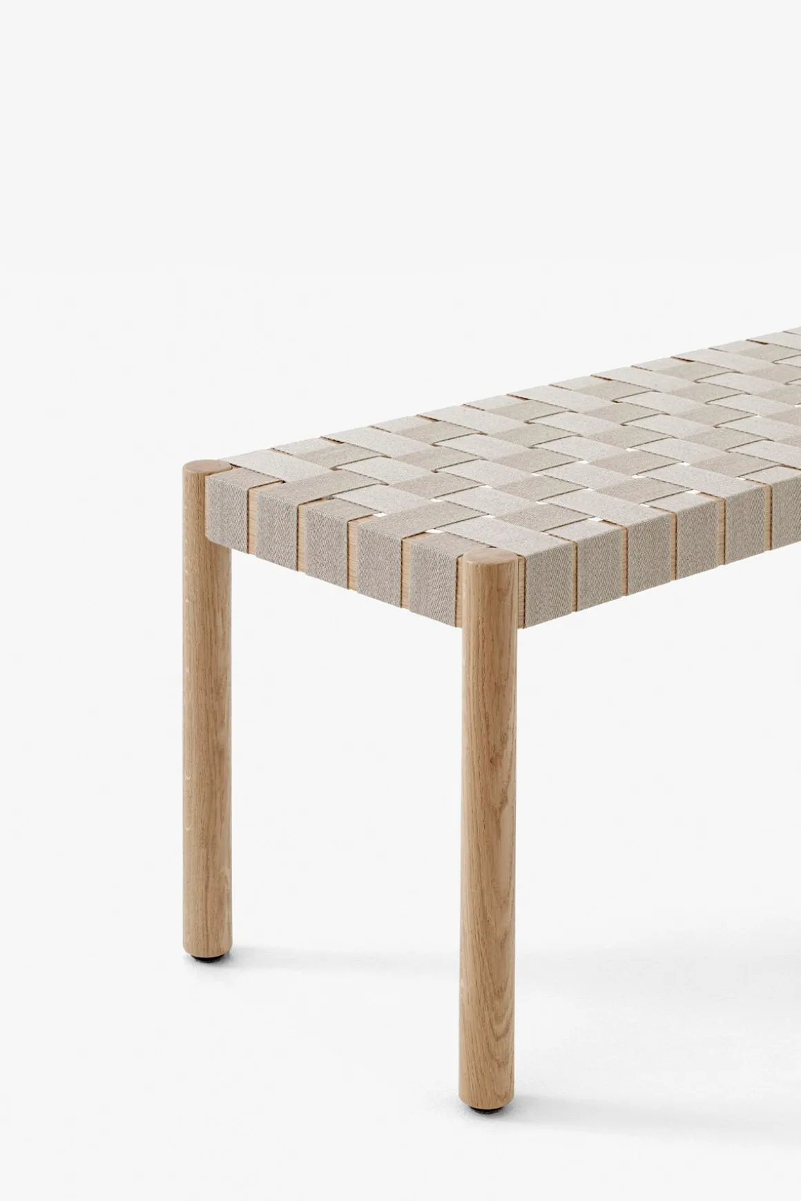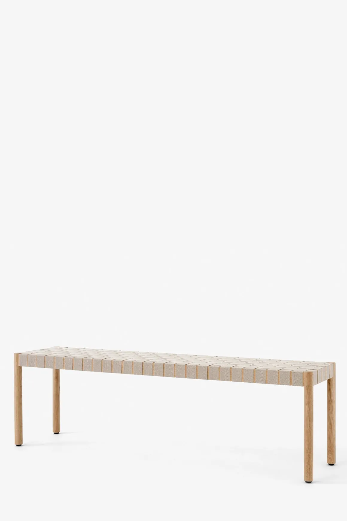 TK5-benken fra u0026amp;Tradition er oppkalt etter Betty Nansen-teatret i København og er designet av Jakob Thau og Sami Kallio. Benken er laget av lakkert heltre med sete av håndvevde, brede linbånd av naturlige linfibre. Eikerammen i massivt tre er tilgjengelig i tre finisher: Svartlakkert ask, rødbrunlakkert ask og lakkert, massiv eik med naturlig, flettet lin, samt en versjon i svartlakkert ask med svartfarget lin. Benken er også tilgjengelig i to lengder: 105cm og 157cm. Betty er en nett og taktil benk i naturlige, varige materialer som kan brukes både hjemme og på hytta. Bruk den i gangen, på kjøkkenet, soverommet eller på barnerommet.