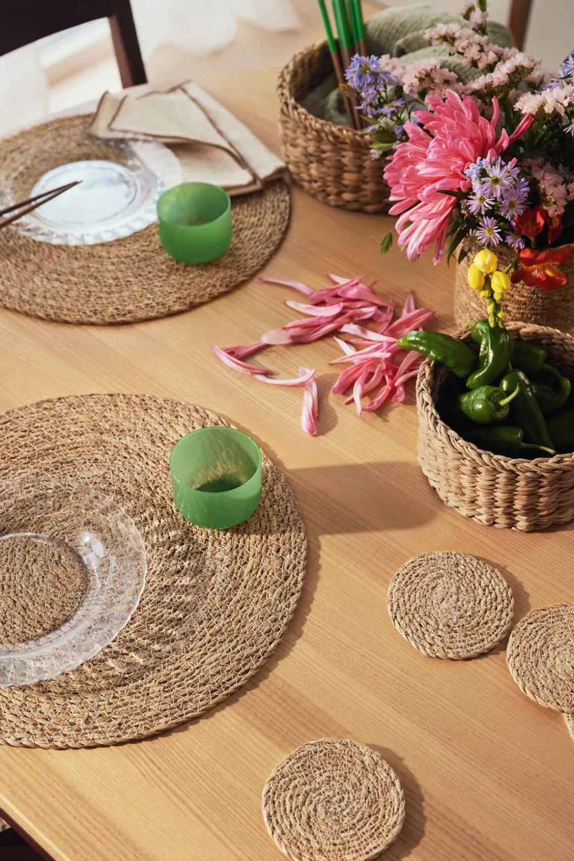 Rund bordbrikke i flettet jute fra svenske Dixie. Dixie har fokus på funksjonelle og tidløse produkter i naturlige kvaliteter. Brikken kan benyttes på en duk eller rett på bordplaten. Enkel å rengjøre, bare skyll av i lunkent vann eller med en klut etter bruk.