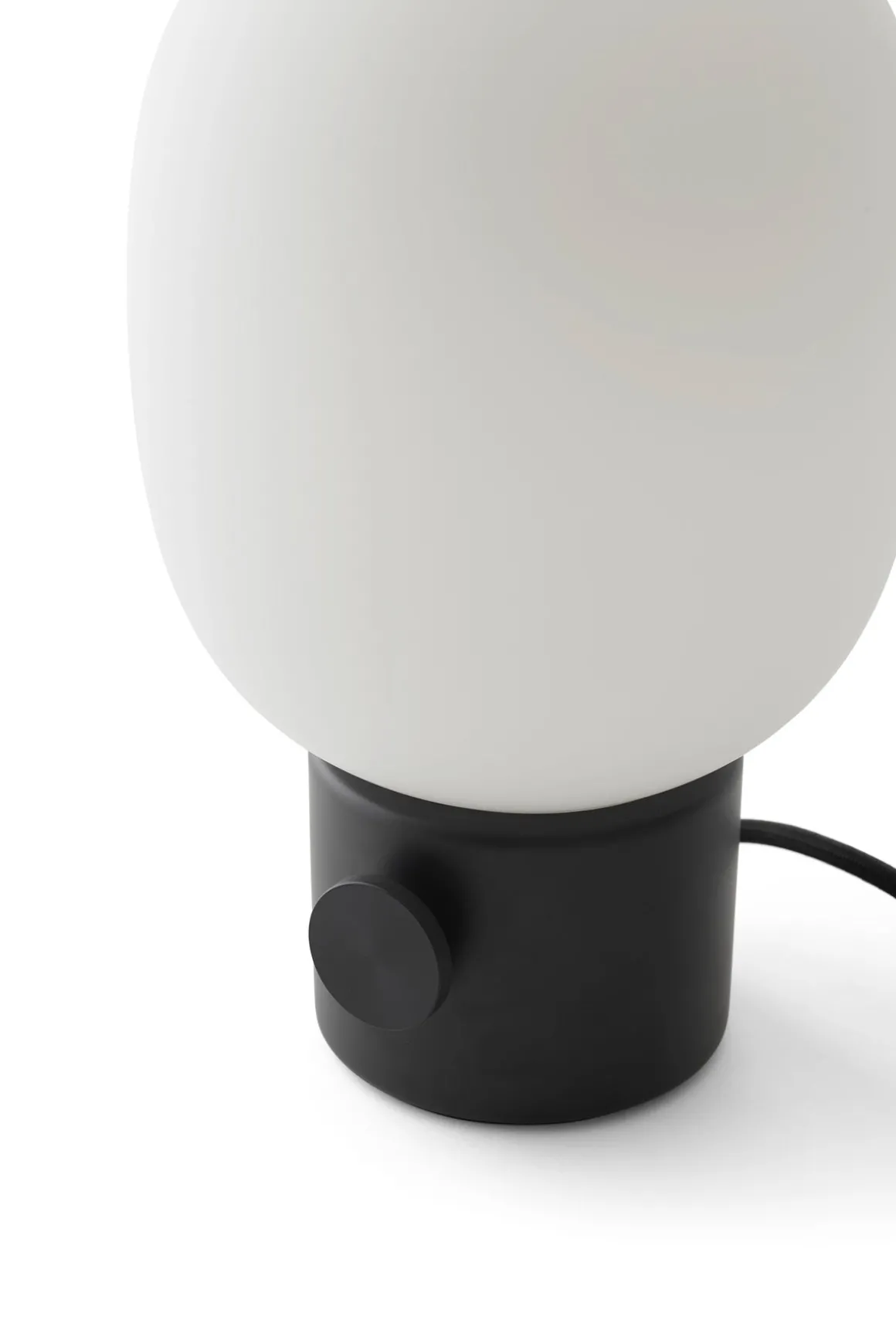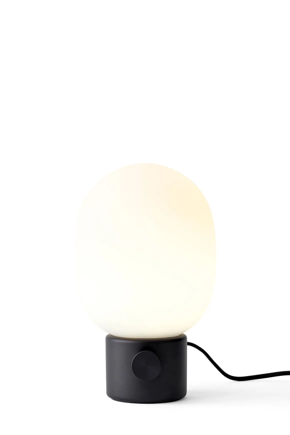 Stilfull og minimalistisk bordlampe designet av Jonas Wagell bestående av en glasskuppel i opalglass og base av sort metall. Lampen har en industriell bryter av sort metall med dimmer, mens den ovale kuppelen bidrar til et mykt lys som passer godt på både bord og skrivebord, på kommode, bokhylle og i vinduskarmen. Den har en 2 meter lang, sort tekstilledning som følger med, lyspære må kjøpes utenom.