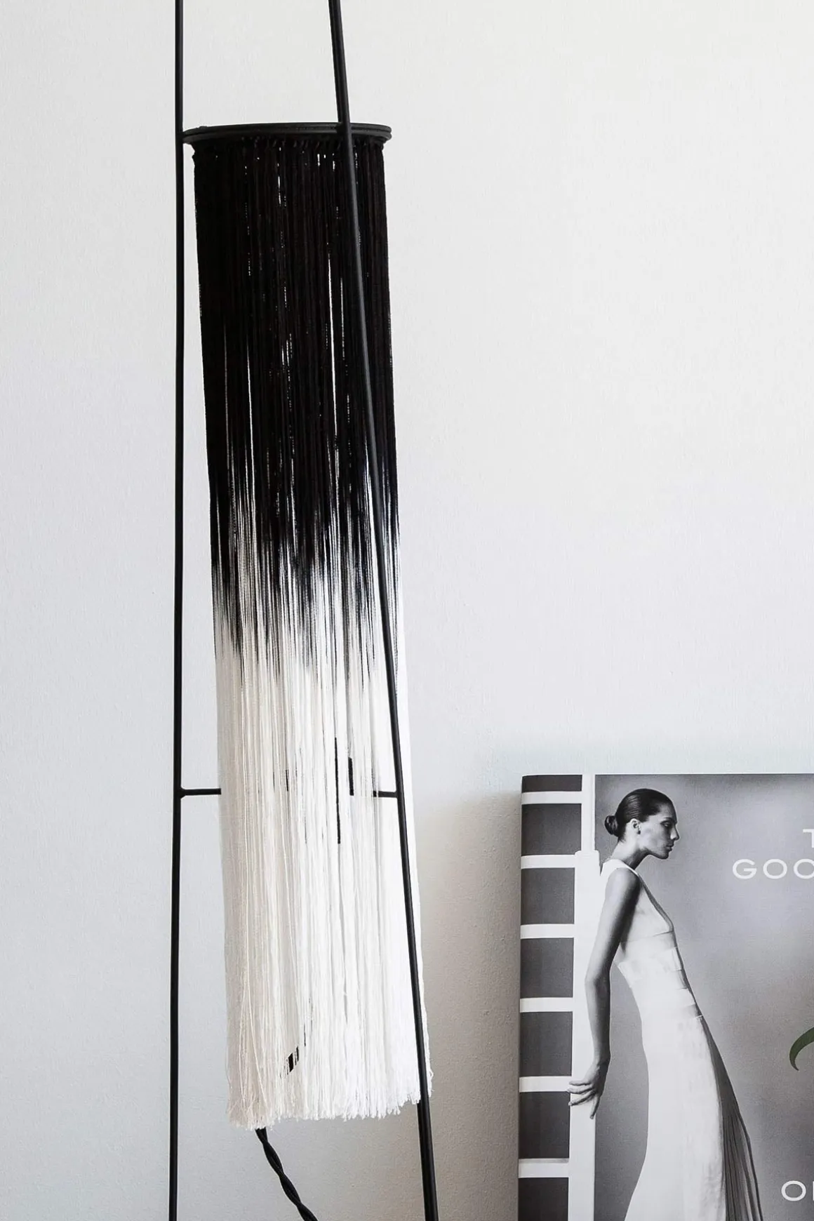 Kiki er en helt rå bordlampe som leker med oppfinnsomme materialer. Lampen er designet av den belgiske motedesigneren Ann Demeulemeester, som har laget en serie med lys for Serax. Bordlampen består av en metallbase og håndmalte viskosetråder i sort og hvitt. De lange trådene er bundet på en kunstnerisk måte for en dramatisk effekt. Designet er enkelt, men samtidig spirituellt, og vil gi hjemmet ditt både stil og personlighet.