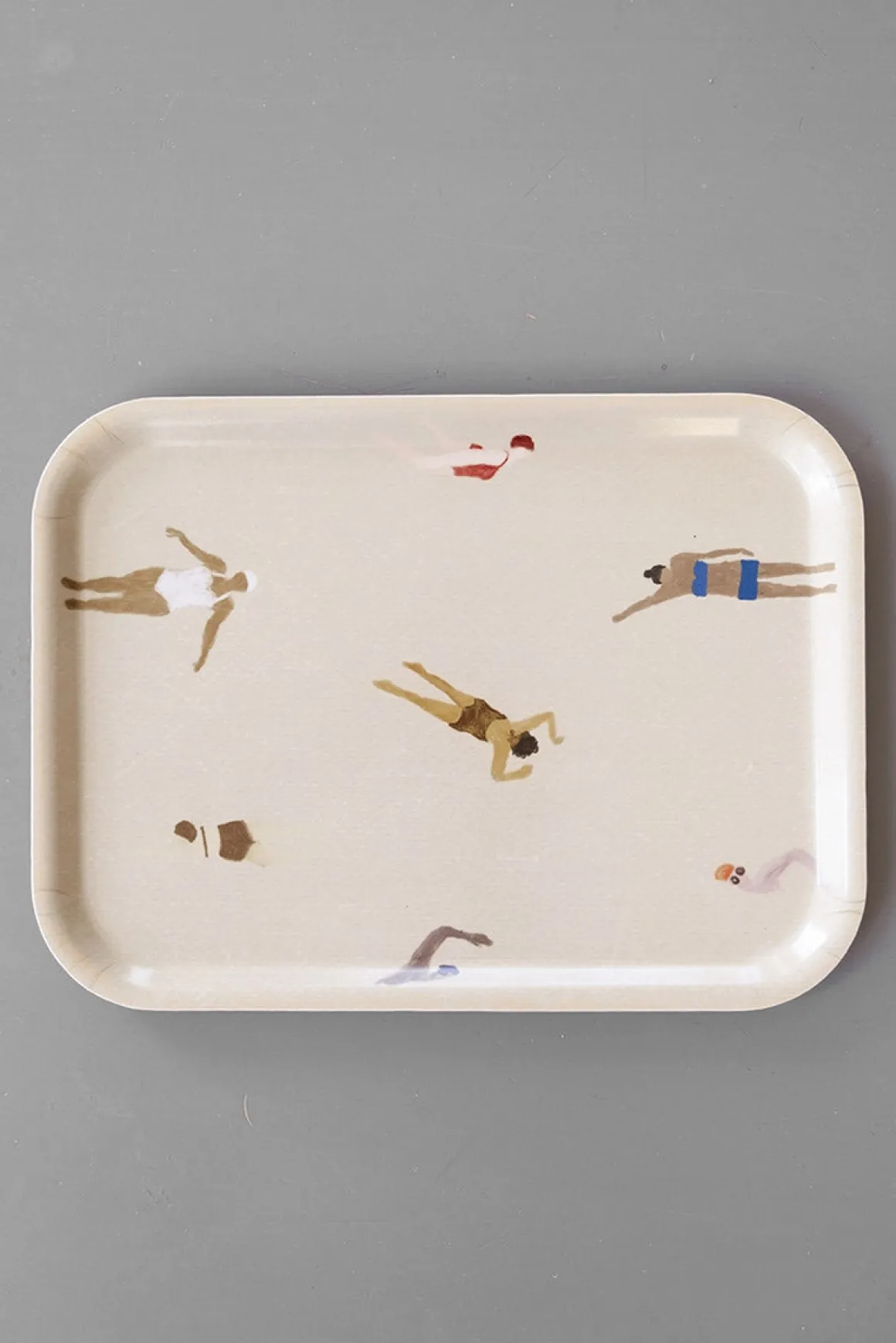 Nydelig serveringsbrett fra Fine Little Day. Brettet er rektangulært med Elisabeth Dunkers populære motiv Swimmers. Brettet passer like godt til servering av frokost på sengen, som til kaffekosen på hytta.