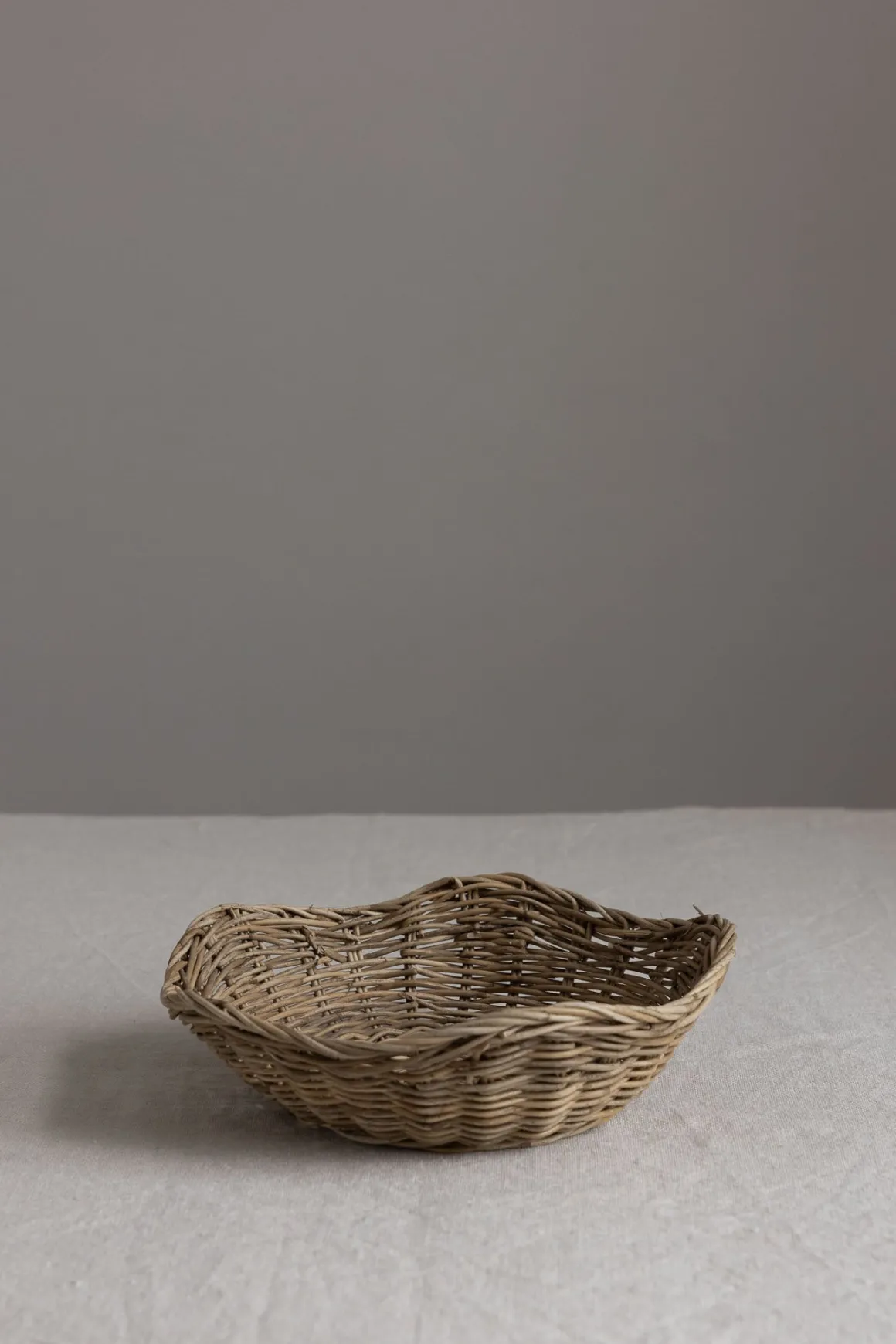 Liten kurv i rotting fra Bruka med en dekorativ, bølget kant som gir den et sjarmerende uttrykk. Passer perfekt som brødkurv eller til oppbevaring av frukt og grønnsaker. Den naturlige rottingfargen og det håndlagde preget gjør den til et fint innslag på kjøkkenet eller spisebordet.