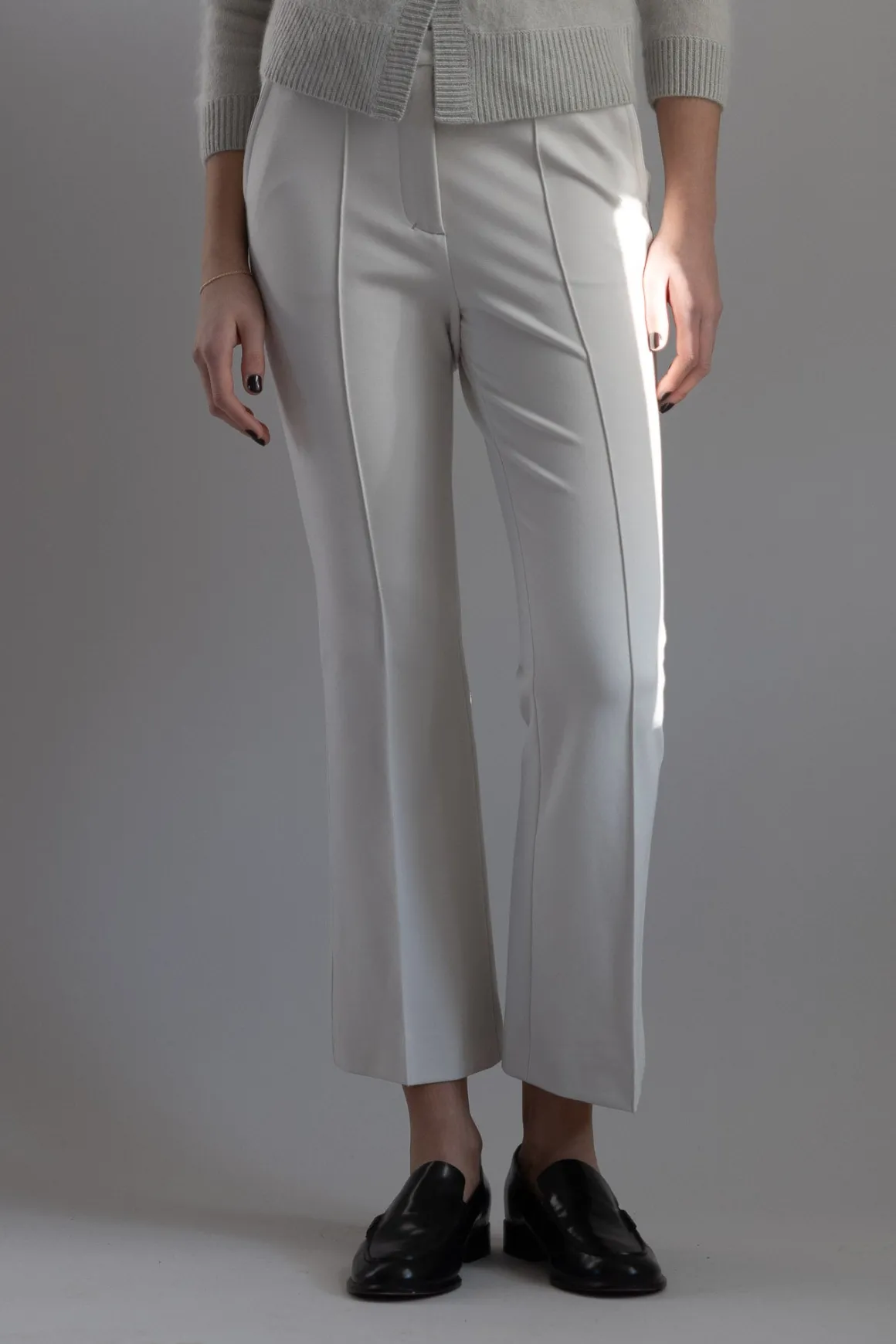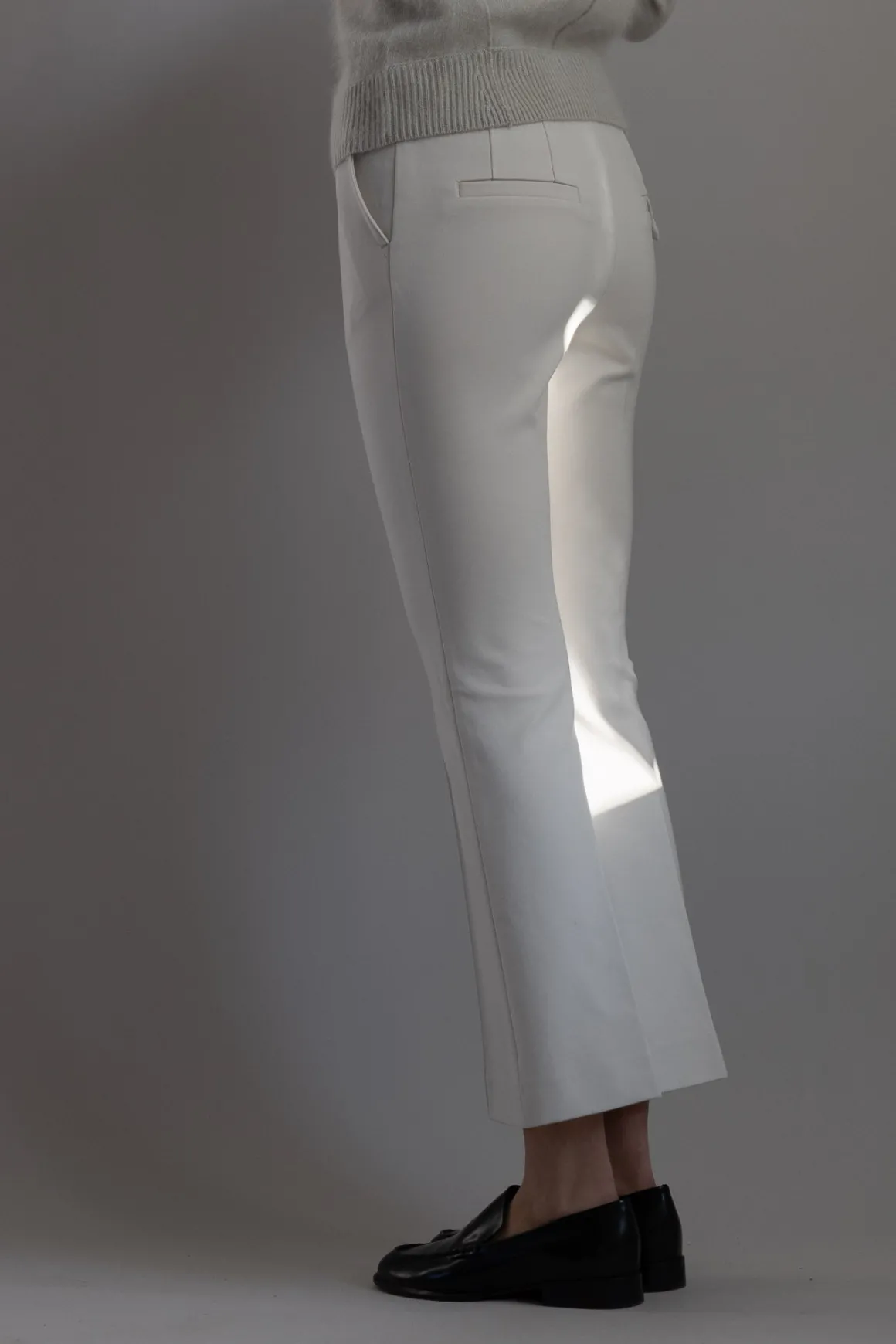 Emotional Essence bukse fra Dorothee Schumacher. Emotional essence er en sofistikert bukse i myk og smidig Punto Milano-stoff som kombinerer komfort med en stilren silhuett. Det croppede snittet og den lett utsvingte ankelen gir en moderne vri, mens de pressede leggene foran tilfører et skreddersydd preg. Buksen har sidelommer for funksjonalitet og passepoilerte baklommer for en gjennomført finish. Den sitter naturlig i midjen og lukkes med hekte og glidelås foran. Perfekt både til jobb og fritid – en allsidig favoritt som enkelt kan styles opp eller ned.