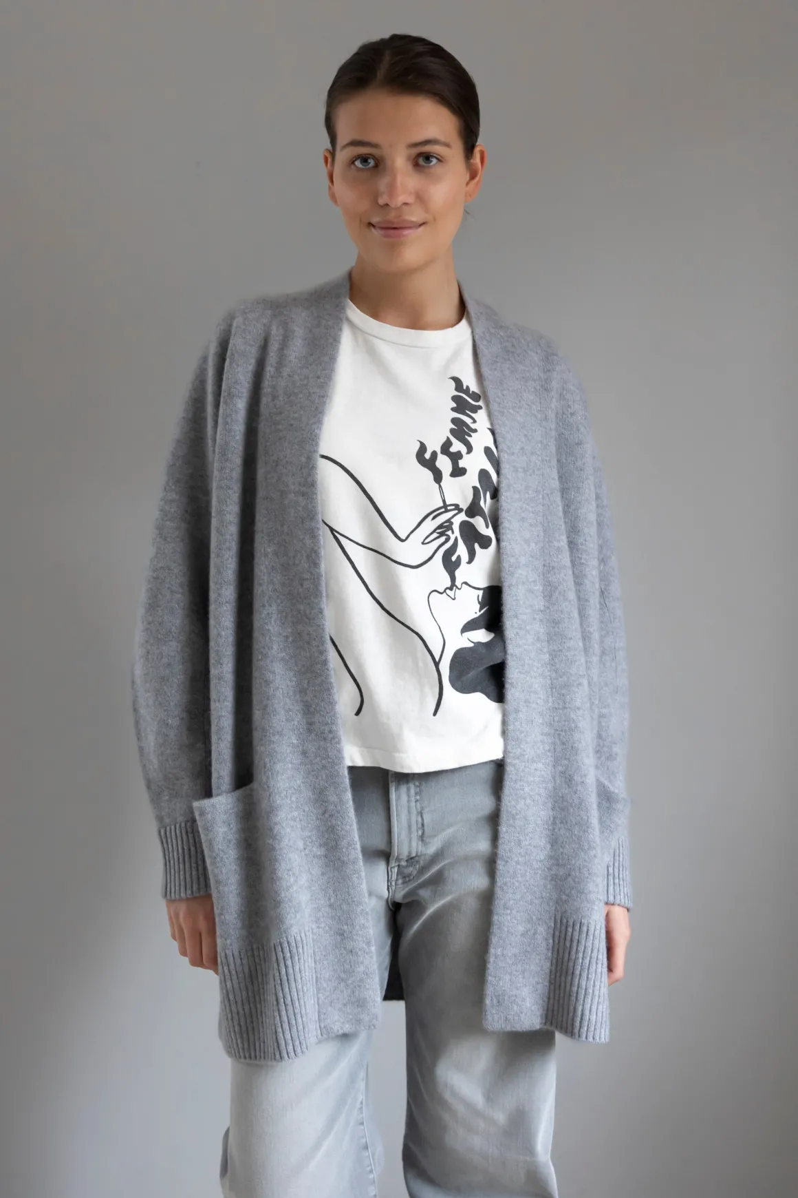 Cardigan i 100% kashmir fra Vince. Genseren er utstyrt med lange ermer og to lommer i front. Plagget har en romslig passform som fullføres med ribbet kant på ermene og i enden.