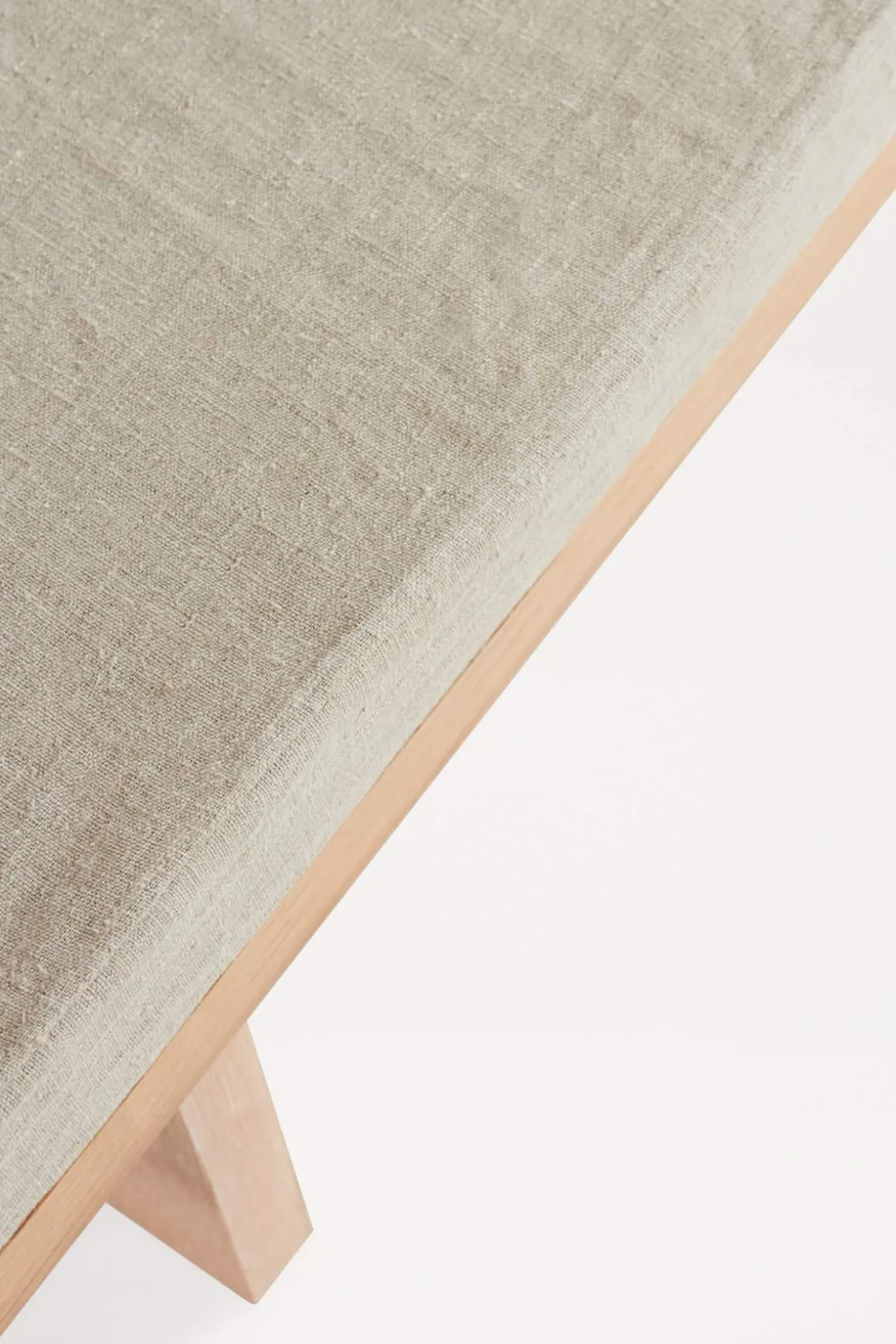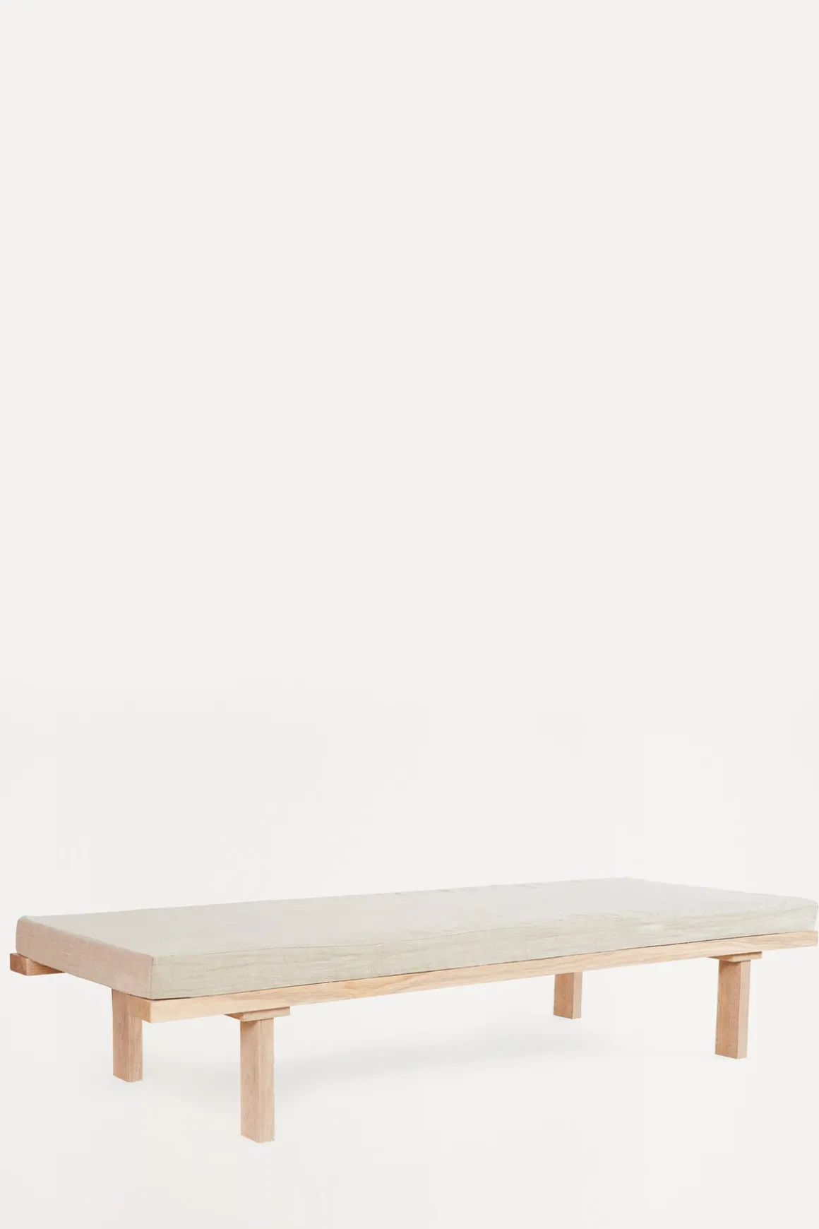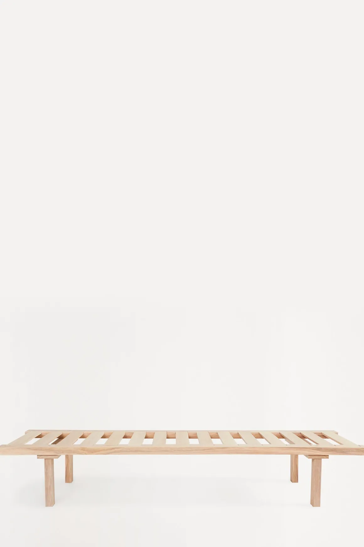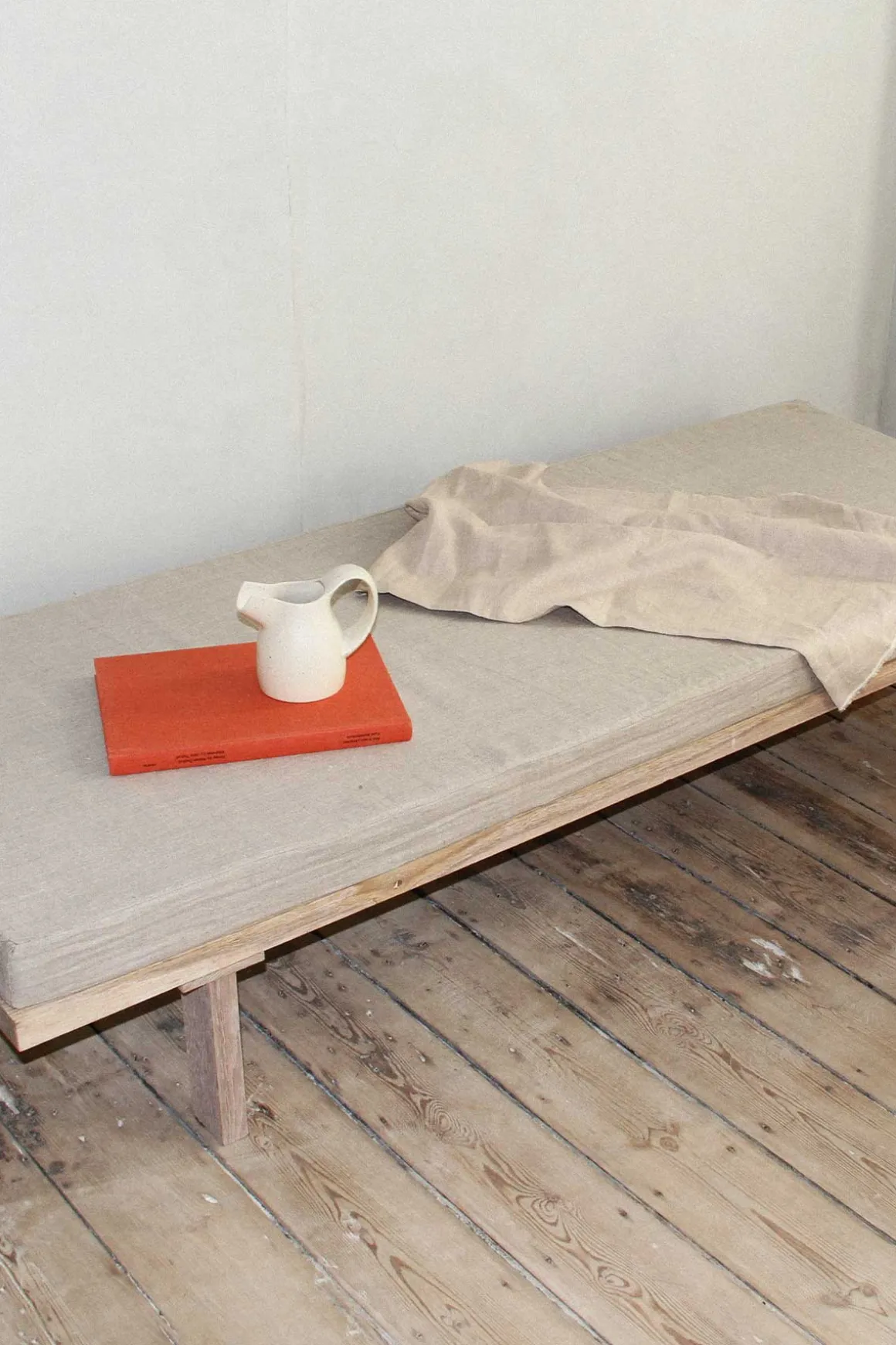 Daybed fra danske Frama, designet av Kim Richardt med ramme i solid, oljet eik og myk madrass med trekk i 100% lin. KR-180 har et stilrent uttrykk, – et møbel som bruker de enkle kontrastene til vertikale og horisontale linjer for å skape en strukturelt ren form. Uttrykket mykes opp med den komfortable tre-lags skummadrassen med lysegrått trekk i eksklusiv lin. KR-180 kommer flatpakket og er enkel å montere uten ekstra verktøy. Perfekt i stuen eller som en ekstra gjesteseng.