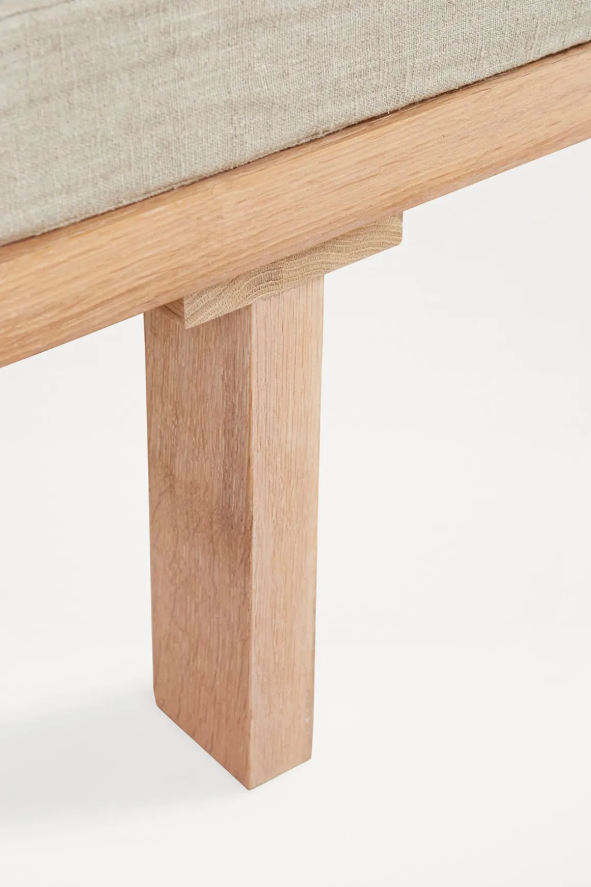 - Materiale: Oljet eik | 100% lintrekk | 3-lags skummadrass