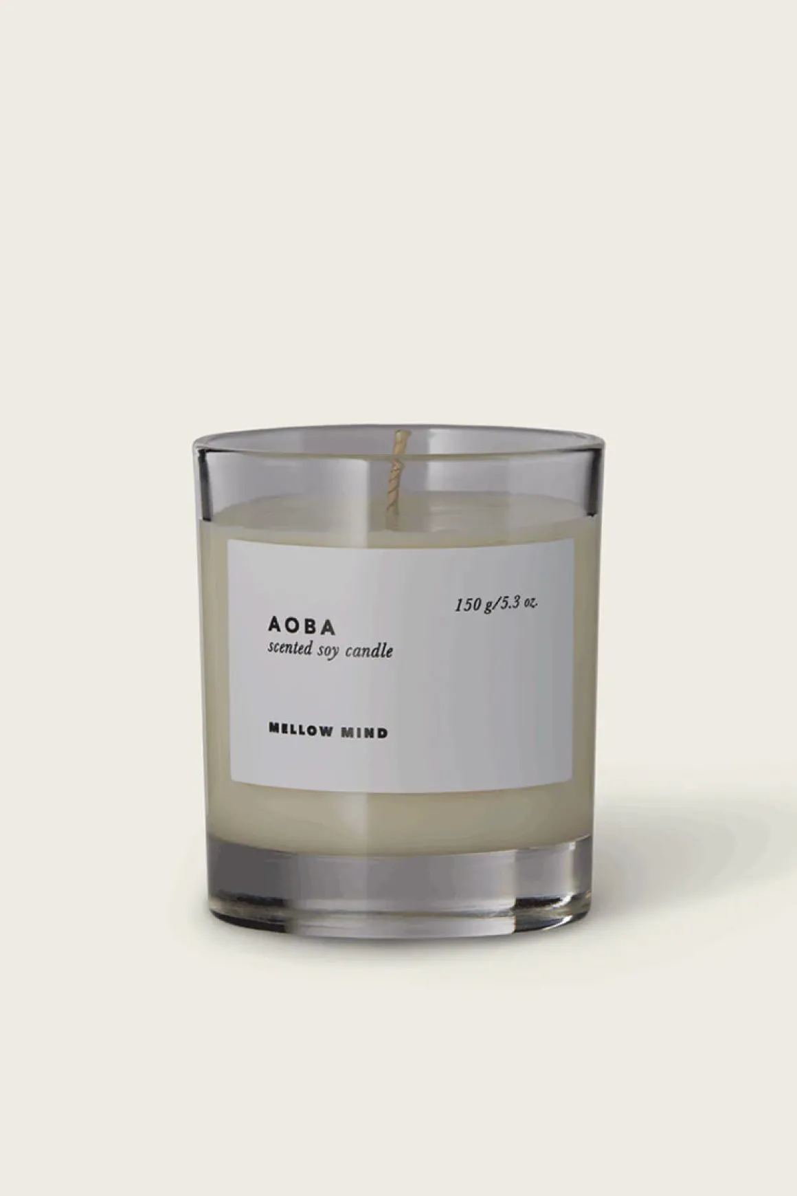 Mellow Minds AOBA Scented Candle er en oppløftende og forfriskende duftopplevelse med toner av organisk peppermynte, rosmarin og eterisk tea tree olje.