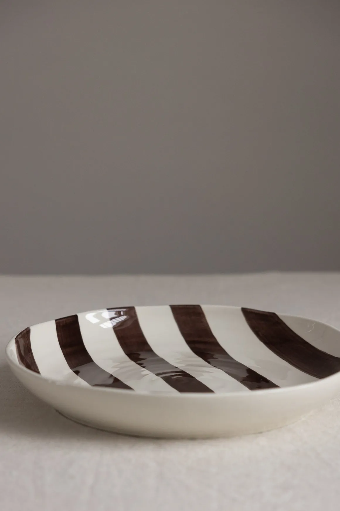 Capri-serviset fra svenske Bruka Design kjennetegnes av sin tidløse og robuste stil med et tydelig skandinavisk uttrykk. Dette runde serveringsfatet i hvitt med brune striper er romslig og perfekt til servering av tapasretter, sjømat, focaccia eller store salater – ideelt når du inviterer til selskap. Fatet er laget av glasert keramikk, noe som gir en holdbar og slitesterk overflate. Kombiner gjerne med resten av Capri-serien, eller skap et personlig uttrykk ved å mikse og matche med annet servise. Passer både hjemme og på hytta.