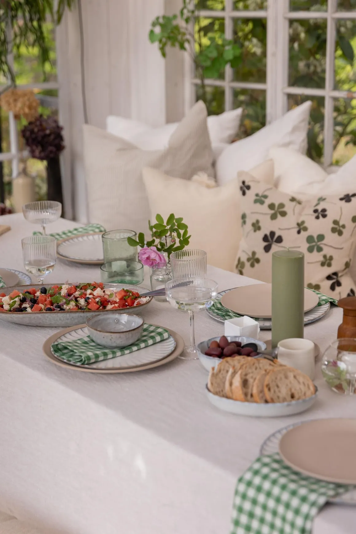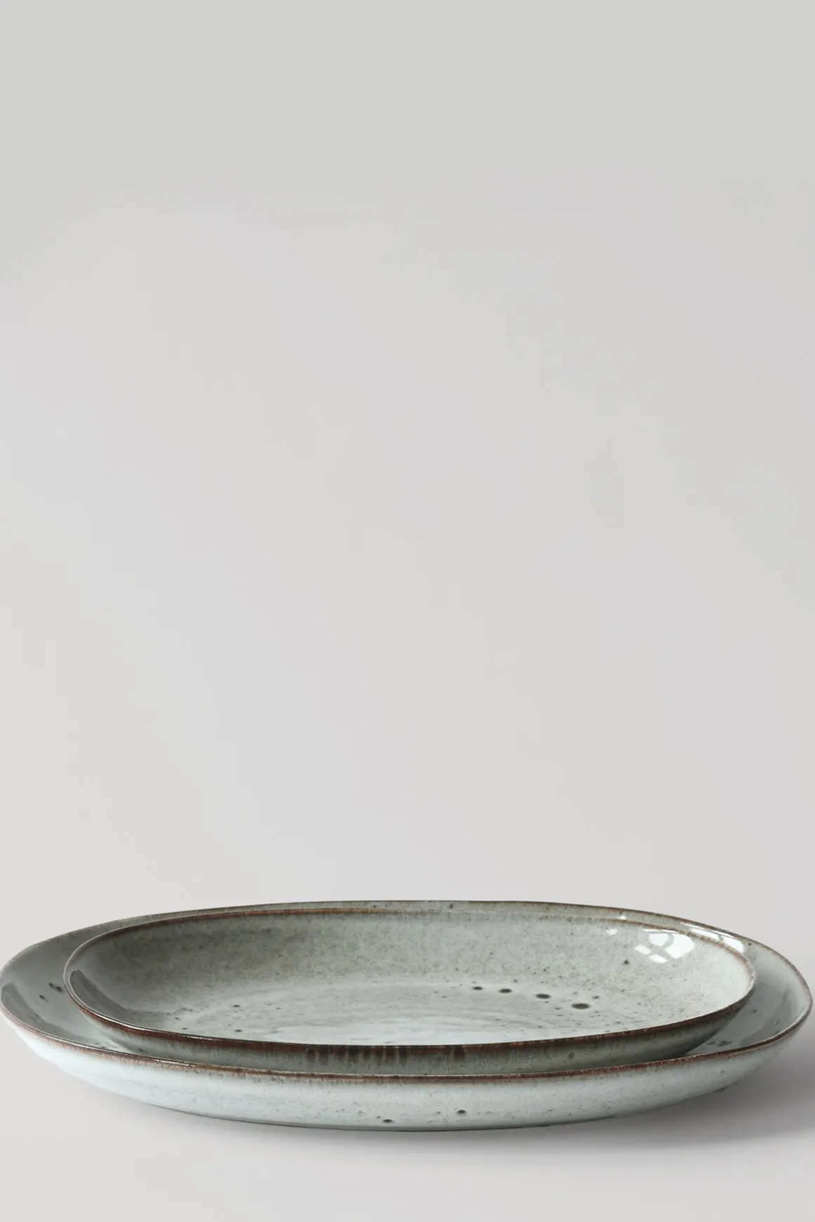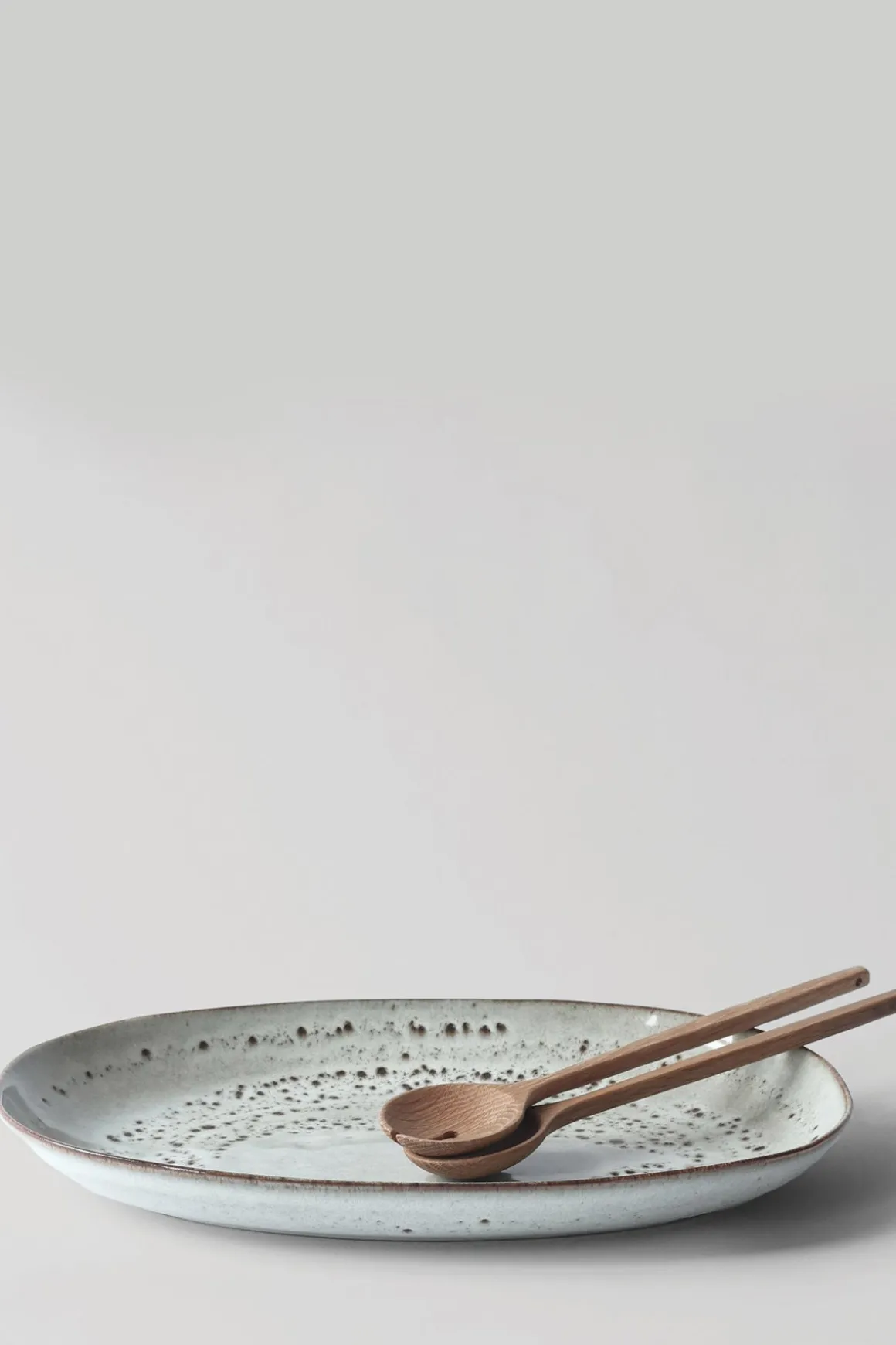 Serveringsfat fra Taranto-kolleksjonen til svenske Tell Me More. Fatet er håndlaget av steintøy i Portugal og har en vakker glasur med en glansfull finish. Hvert enkelt produkt vil derfor variere noe og gi den rustikke, levende følelsen vi elsker. Fatet er et supert tillegg til resten av Taranto-serviset. Man kan også fint mikse og matche med andre serviser – enten fra Tell Me More eller med noe man har fra før. Det gjør uttrykket litt mer eklektisk og avslappet enn hvis alt matcher. Fatet finnes også i en mindre variant.