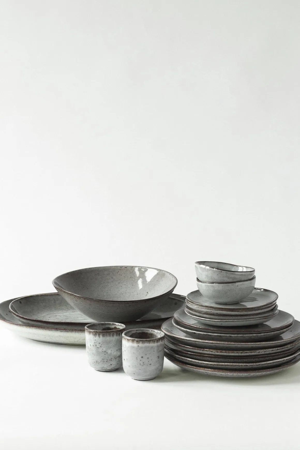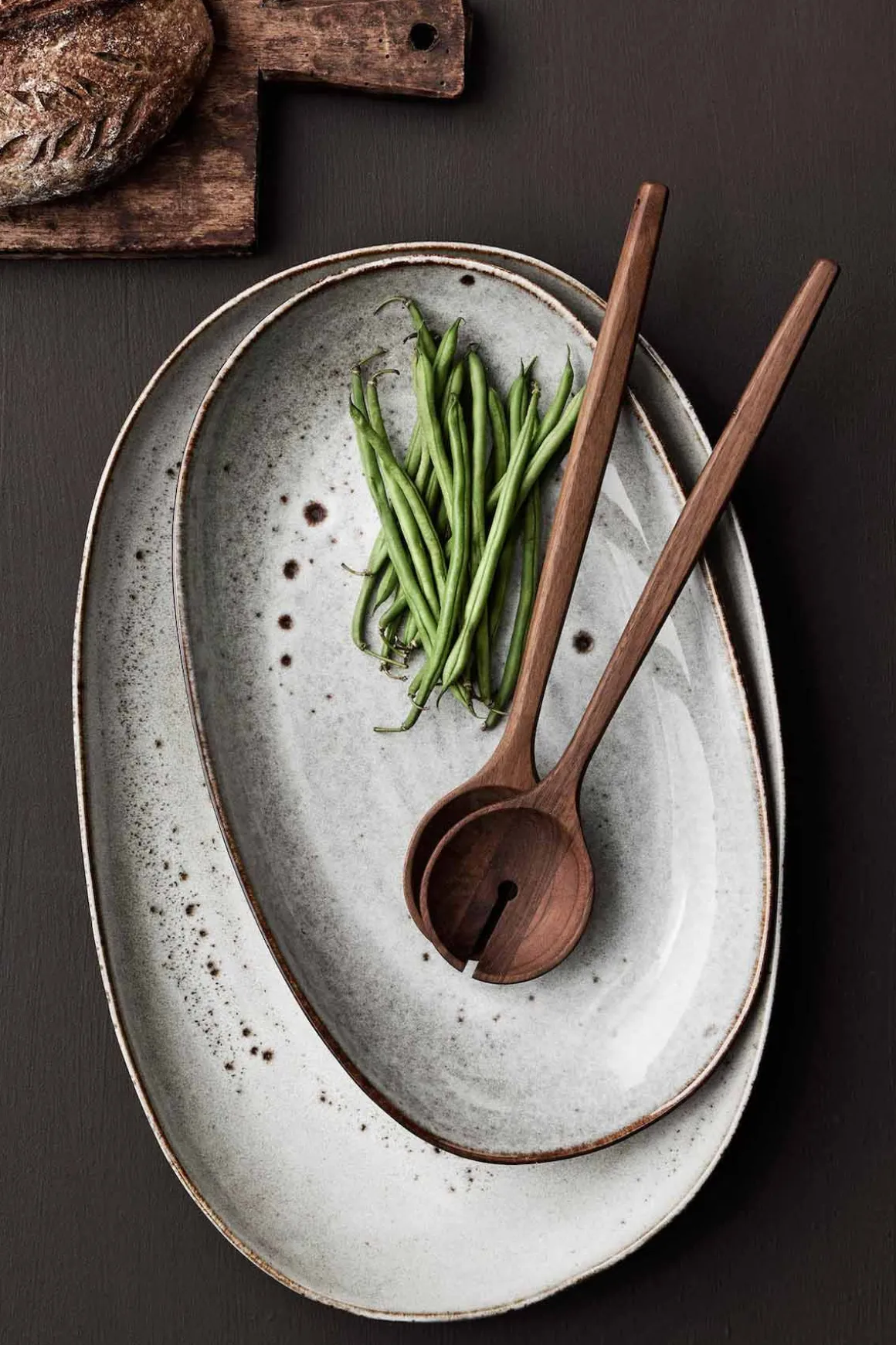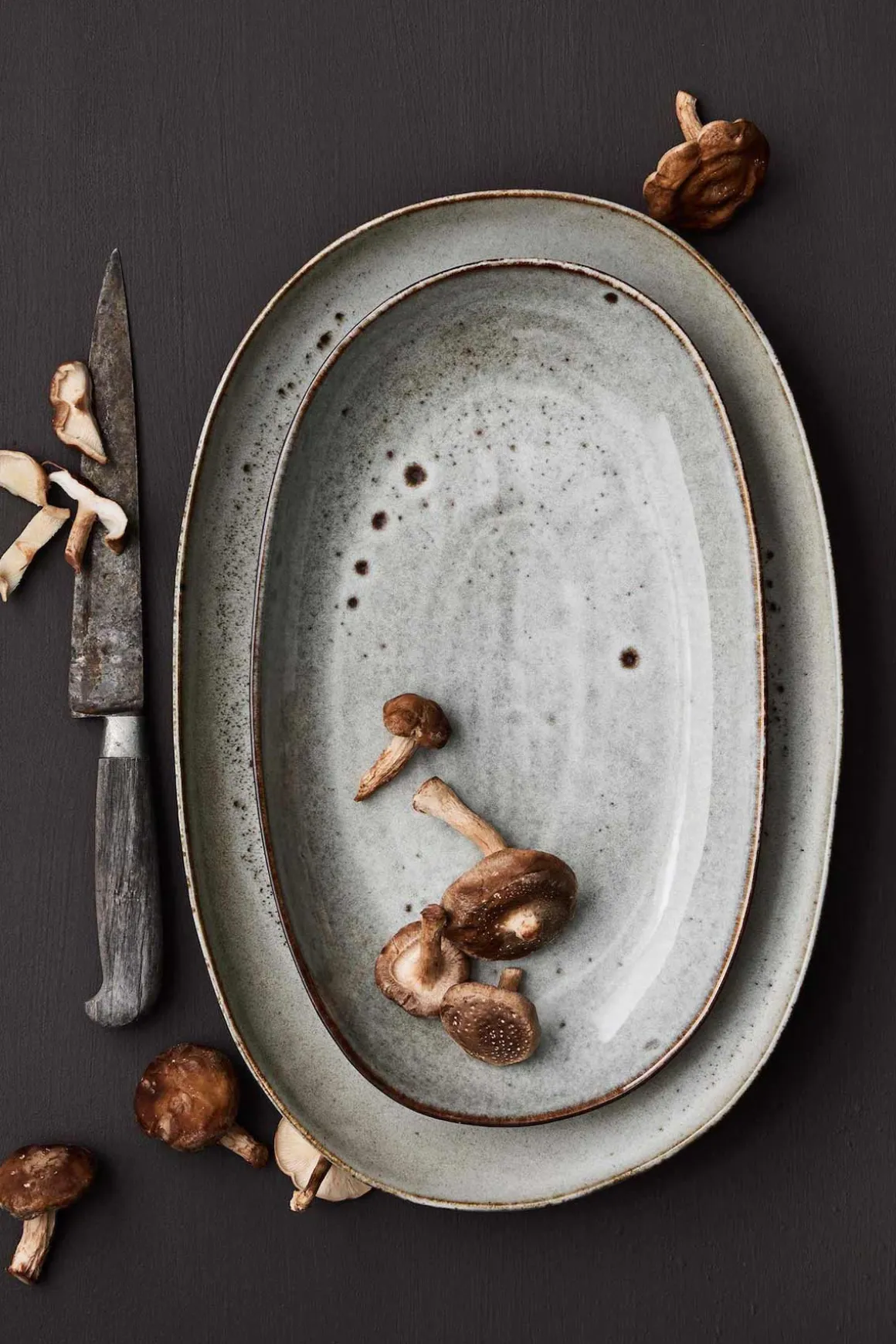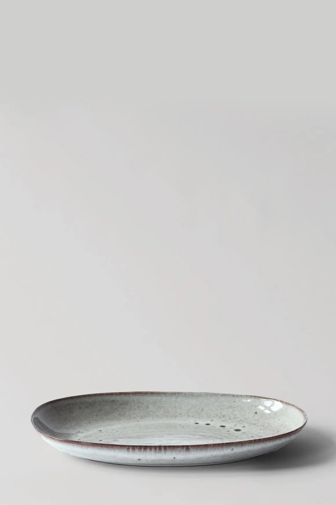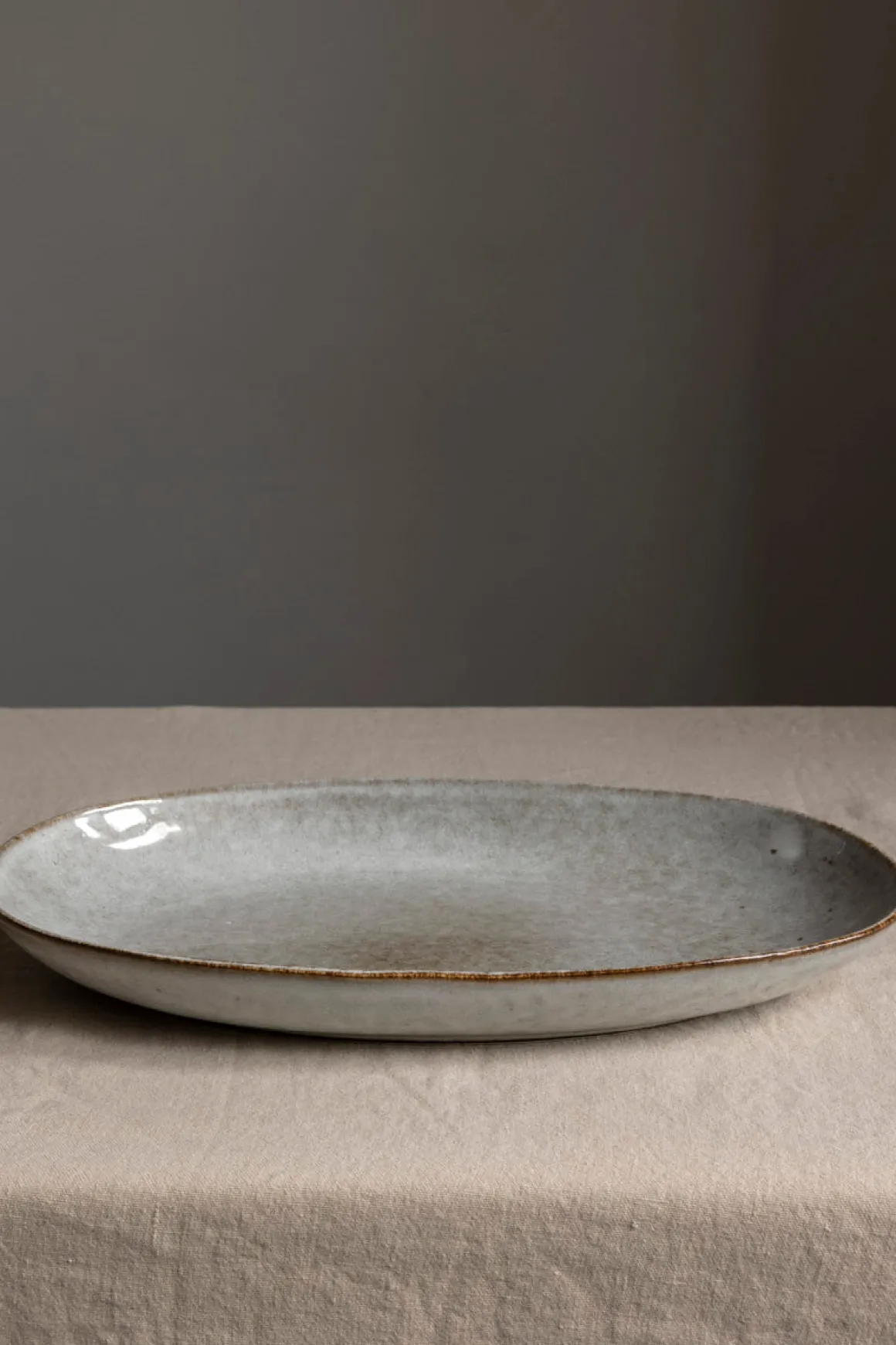 Serveringsfat fra Taranto-kolleksjonen til svenske Tell Me More. Fatet er håndlaget av steintøy i Portugal og har en vakker glasur med en glansfull finish. Hvert enkelt produkt vil derfor variere noe og gi den rustikke, levende følelsen vi elsker. Fatet er et supert tillegg til resten av Taranto-serviset. Man kan også fint mikse og matche med andre serviser – enten fra Tell Me More eller med noe man har fra før. Det gjør uttrykket litt mer eklektisk og avslappet enn hvis alt matcher. Fatet finnes også i en større variant.