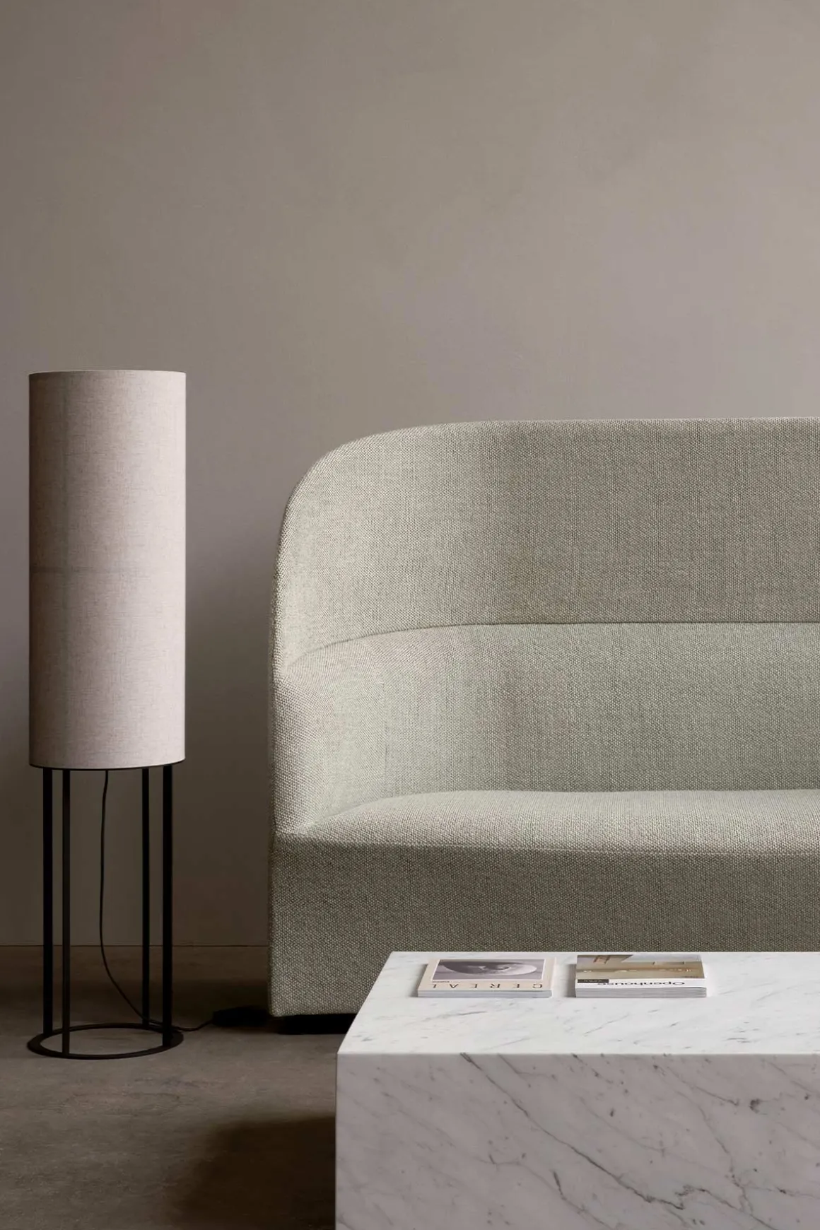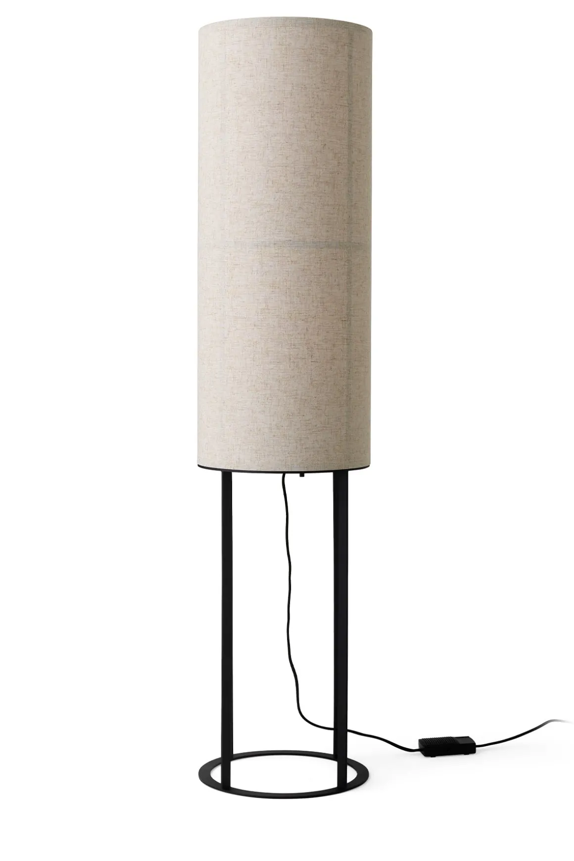 Hashira gulvlampe med høy metallbase i pulverlakkert stål og beige skjerm. Den sylinderformede lampen er inspirert av japansk arkitektur med sitt særegne, men samtidig minimalistiske utseende. Lampeskjermen av lin gir et behagelig diffundert lys. Perfekt i stua, på gjesterommet eller ved siden av sengen. Hashira kommer i to fargenyanser; hvit og raw.