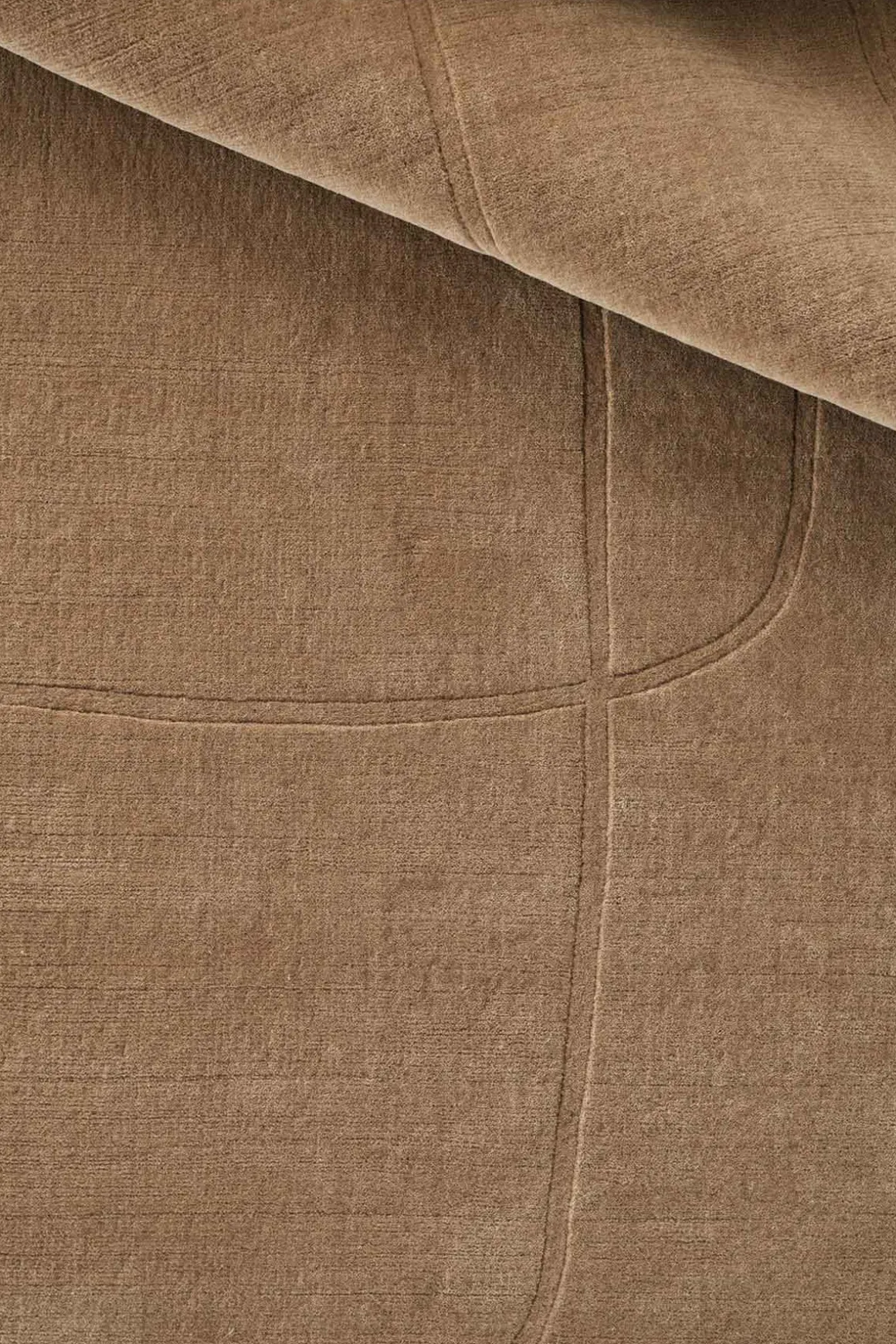 Cursive Expanse gulvteppe fra Linie Design i beige, designet av Urd Moll Gundermann. Gulvteppet har en buktende linje som danner et subtilt mønster på en nøytral bakgrunn, og skaper en tiltalende tekstur og visuell effekt som gir en