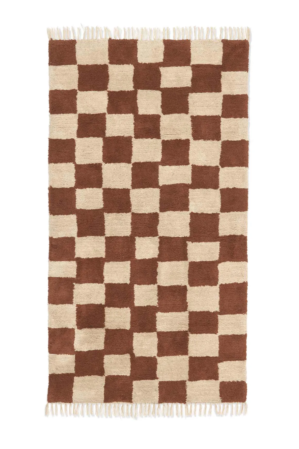 Mara Washable Rug fra Ferm Living er et mykt, rutet gulvteppe i økologisk bomull med dekorative frynser som kan passe i flere rom. Gi soverommet, barnerommet, kjøkkenet eller gangen en mykere touch. Håndtuftet fra GOTS-sertifisert, økologisk bomull, og er et vågalt, men balansert design som vil gi ethvert rom et lekent element av kontrast. Det beste er at du bare kan hive den i vaskemaskinen når den blir møkkete, som gjør teppet enda mer praktisk og brukervennlig.