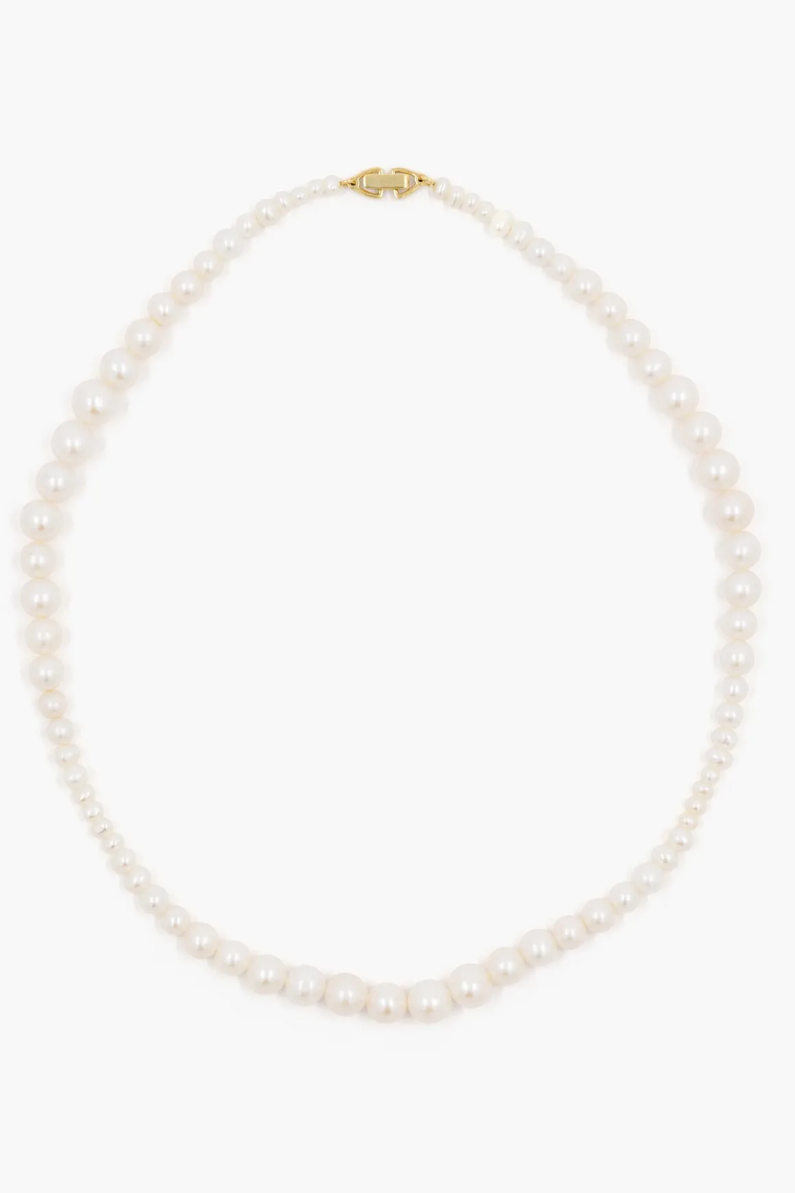 Olga halskjede fra Ragbag. Olga er en moderne tolkning av det klassiske perlekjedet, og har ferskvannsperler i varierende størrelser. Inspirert av Ragbag Studios lidenskap for å kombinere tradisjonelt håndverk med moderne uttrykk, er dette halskjedet en tidløs og allsidig investering!