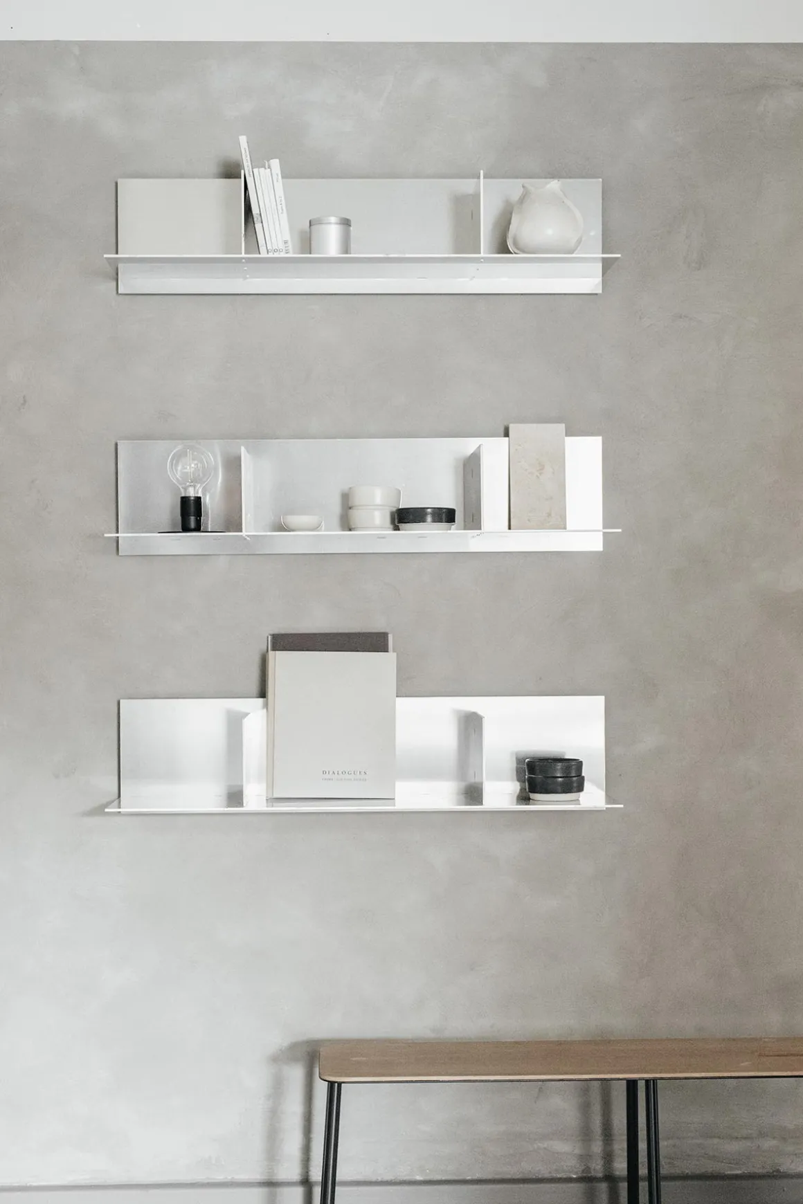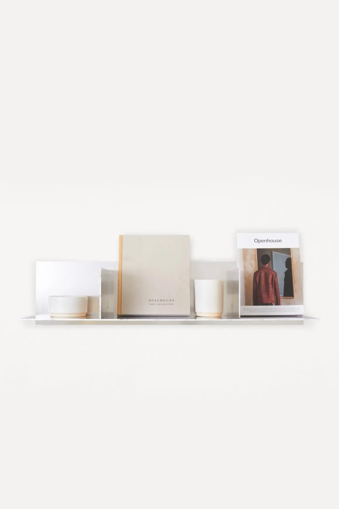 Allsidig og tøff vegghylle i ubehandlet aluminium fra Frama. Rivet-hyllen er skåret ut med laser og deretter hamret for hånd av dyktige håndverkere. Rivet Shelf er perfekt til oppbevaring og display av dine favorittgjenstander. Rått og industrielt uttrykk som får en vakker patina etter bruk. Denne hyllen finnes også i en større størrelse.