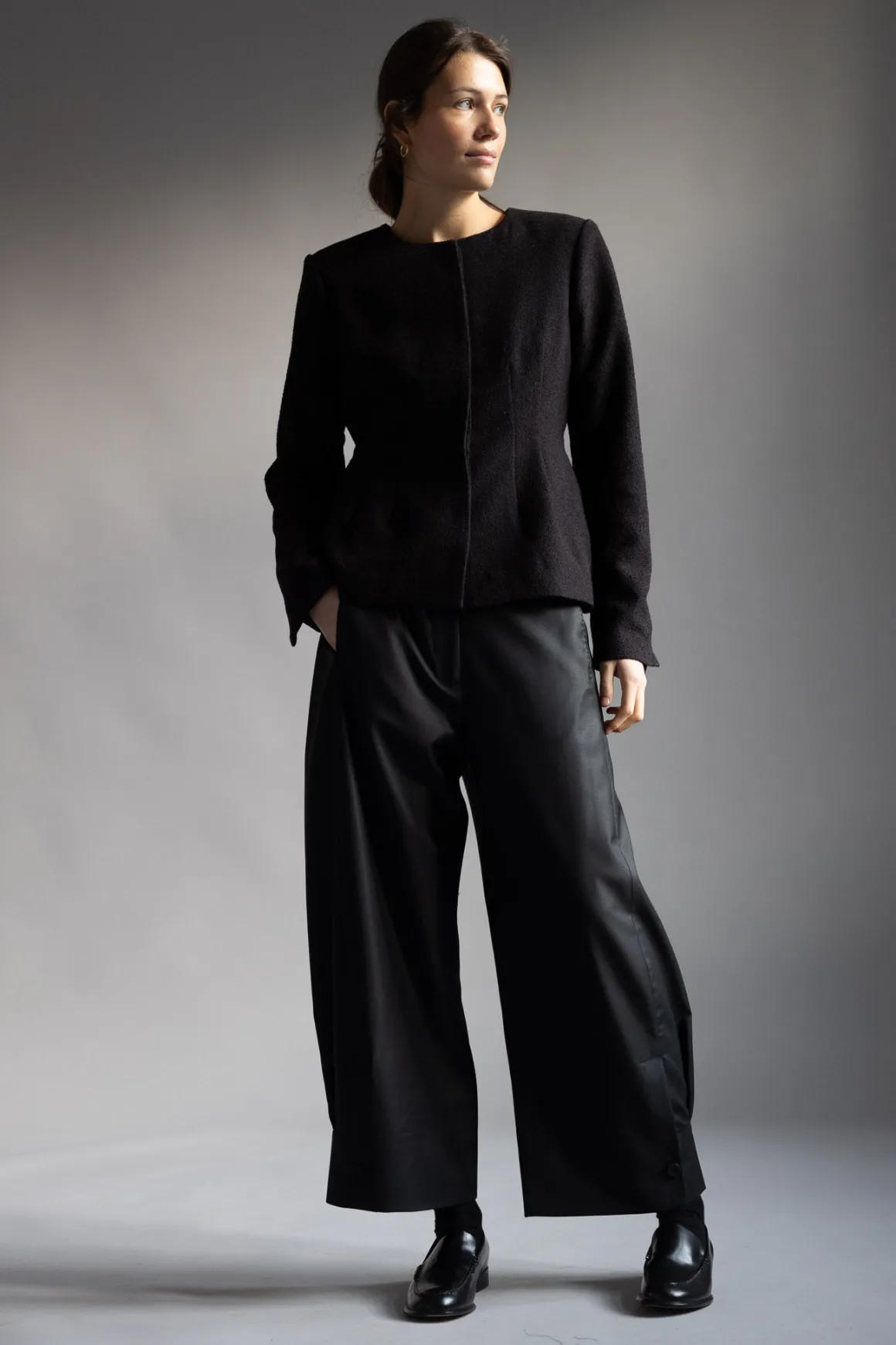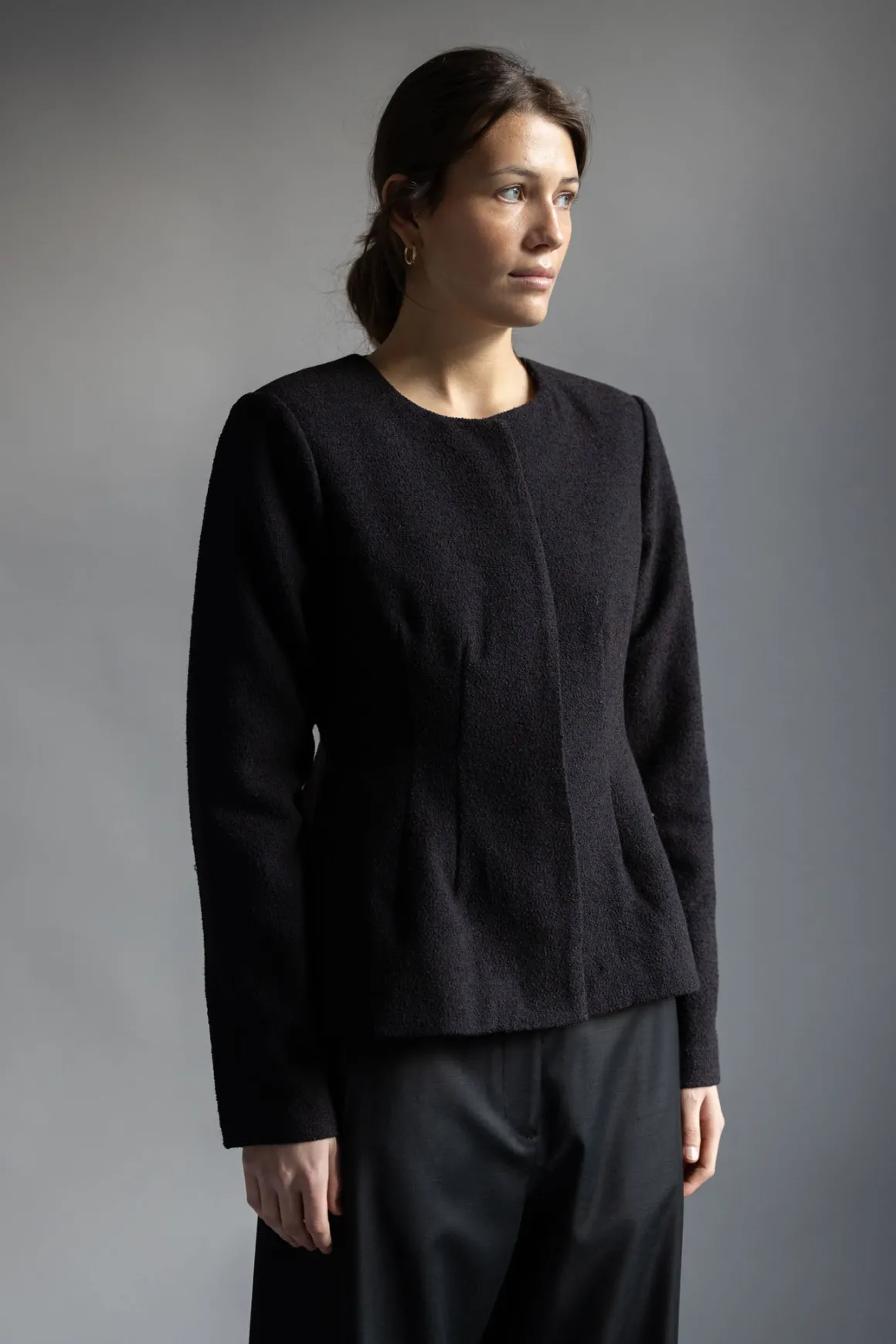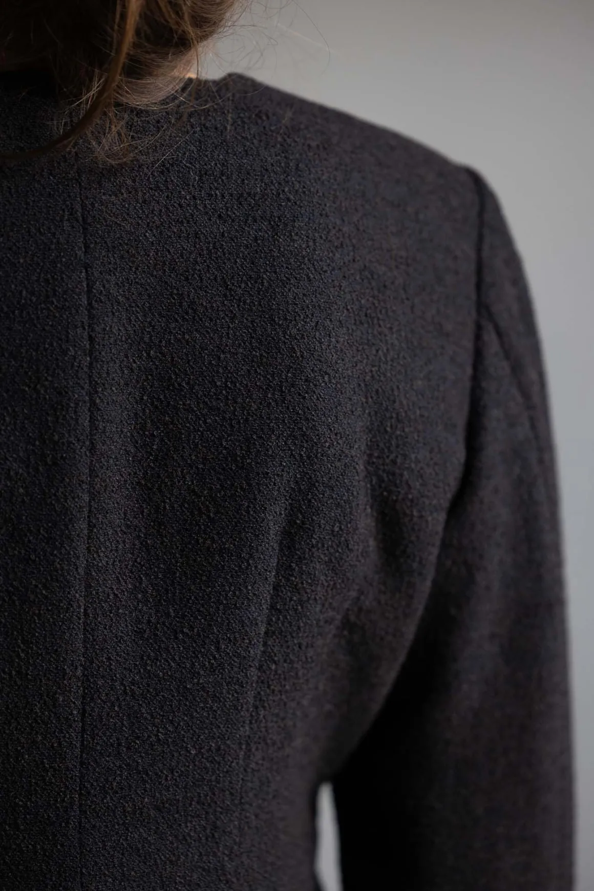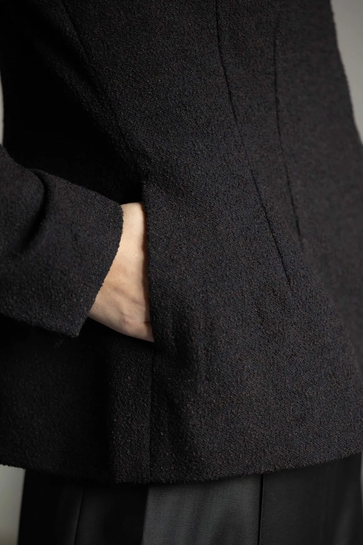 Klassisk figursydd jakke i brun ullbouclé fra MKDT. En sofistikert jakke med en feminin silhuett og markert midje. Den tidløse boucléstrukturen gir et eksklusivt uttrykk, mens passformen fremhever kroppens naturlige linjer. Perfekt for både hverdagsbruk og mer formelle anledninger. Laget av ull og polyamid, en kombinasjon som gir varme, holdbarhet og lett stretch. La denne jakken bli et nøkkelplagg i garderoben – et tidløst valg som aldri går av moten.