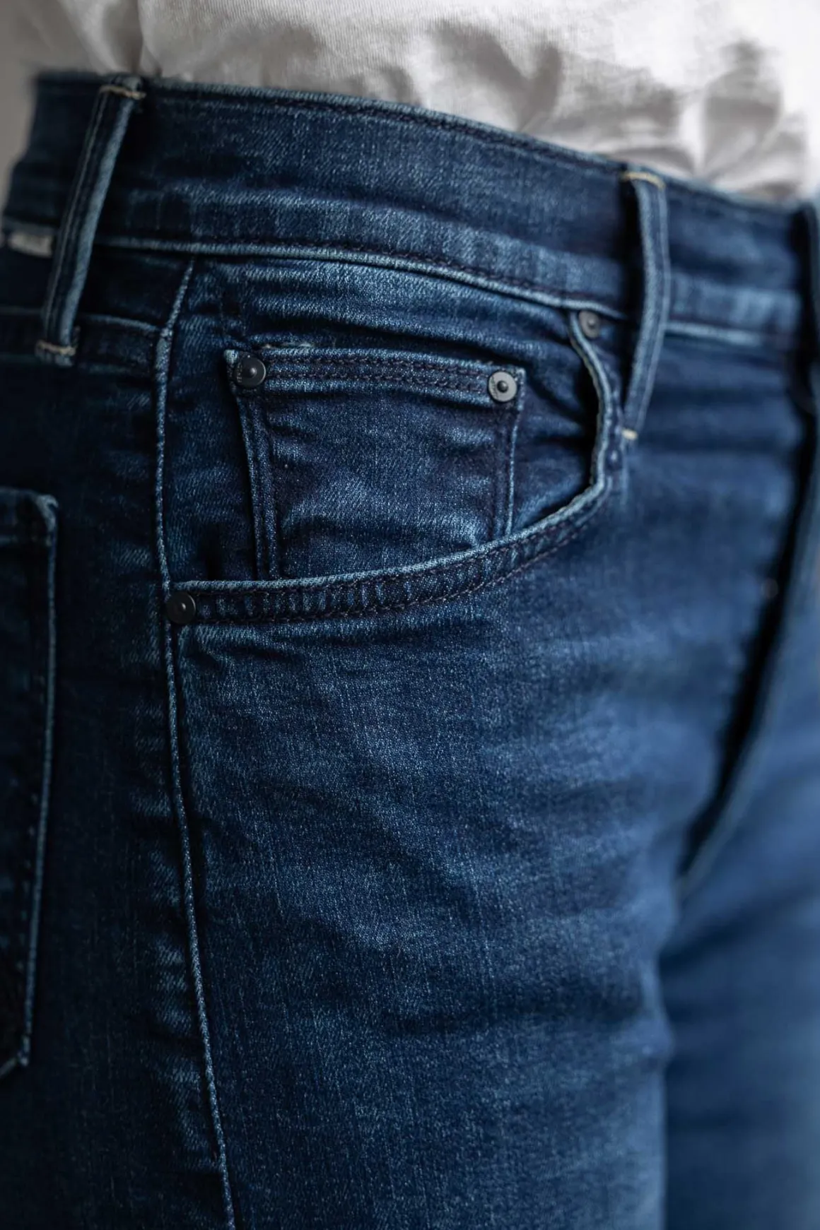 The Tomcat Roller Sneak fra Mother er en jeans med høyt liv og vide ben som skrår ut fra hoften og nedover. Jeansen har knapper i gylfen, en mørk blå vask med lett falming og subtile whiskering-detaljer ved knærne, noe som gir den et avslappet uttrykk. Laget i stretchy denim for ekstra komfort, er dette en hverdagsjeans som enkelt kan styles opp eller ned.