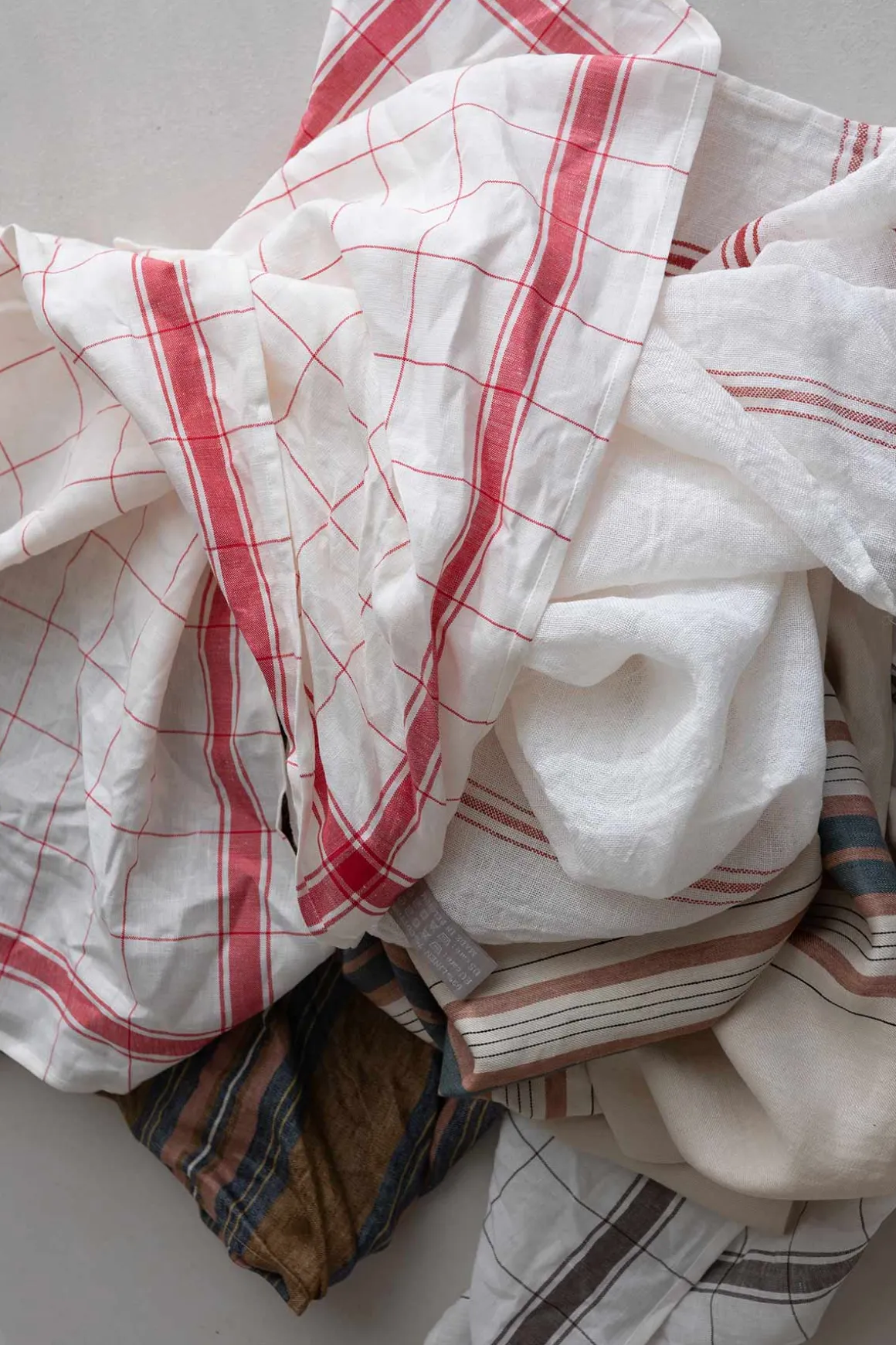 Parma kjøkkenhåndkle fra det belgiske merket Libeco. Håndkleet har en crisp, hvit farge, med klassiske røde ruter. Kjøkkenhåndkleet er ideelt til å tørke glass, uten at det legger igjen lo! (Håndkleet henger først på bildet)