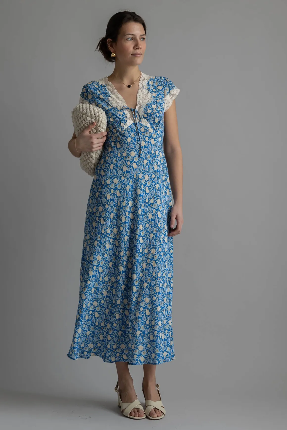 Den delikate og romantiske Amari Dress Shell Pansy Indigo fra Rixo er en tidløs kjole som kombinerer feminin silhuett med vintageinspirerte detaljer. Det lette viskosematerialet faller vakkert over kroppen, mens den insvingede midjen og knyting foran brystet gir en flatterende passform som fremhever figuren. Med innsnitt ved brystet og en skjult glidelås på siden, sitter kjolen perfekt og skaper en sofistikert look. De delikate blondene på V-halsen og ermene tilfører en romantisk touch, som gjør denne kjolen ideell både for spesielle anledninger og hverdagsøyeblikk.