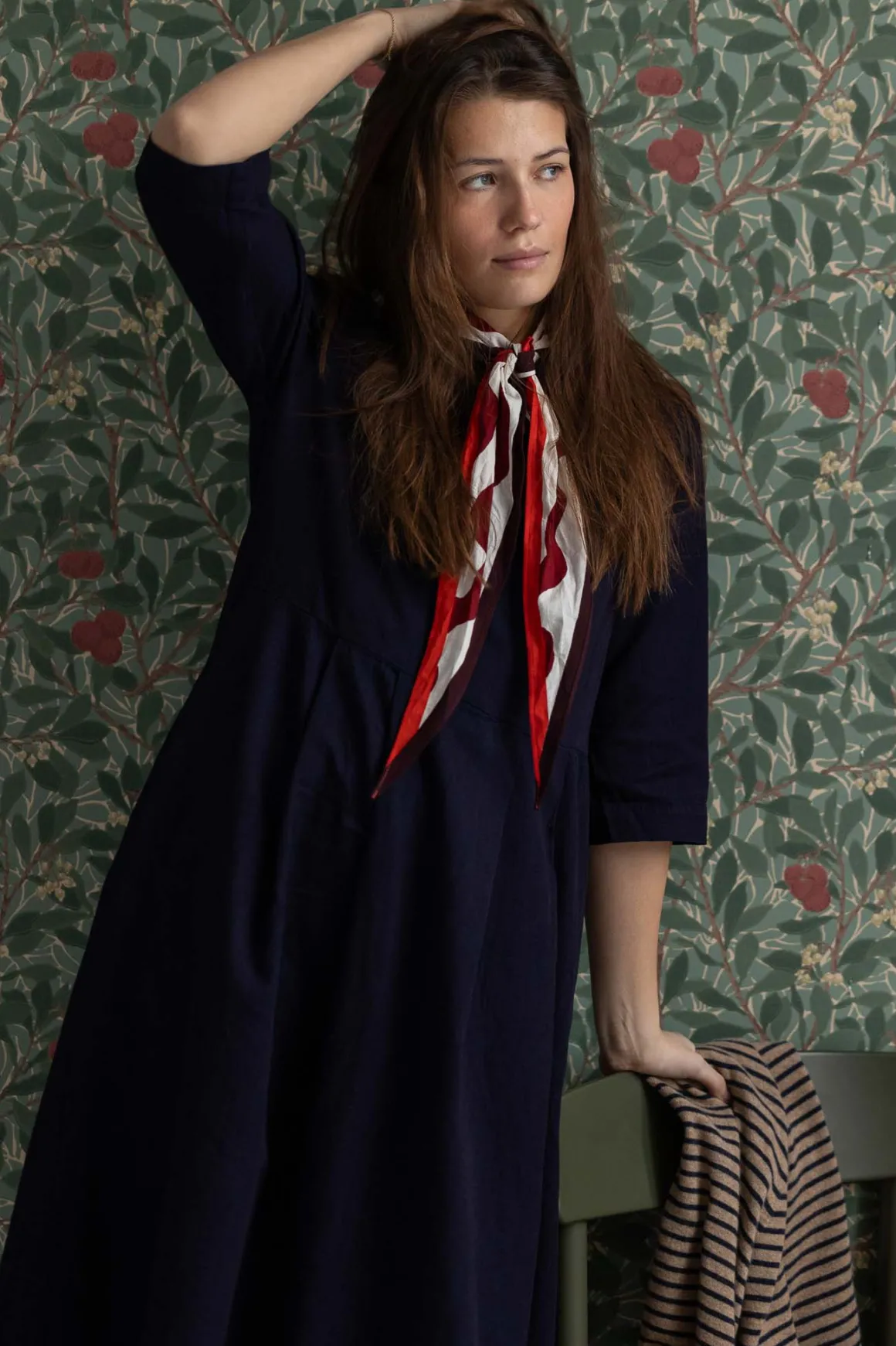 Franca-kjolen fra Toast er en tidløs og nydelig kjole med detaljer som skaper et gjennomført uttrykk. Laget i myk bomullstwill med en båthals som rammer inn snittet. Inverterte og rette legg foran gir skjørtet flott bevegelse, mens praktiske sidelommer gjør den både funksjonell og allsidig. De spette nyansene i indigo gir plagget ekstra karakter. Franca er en kjole du alltid kan vende tilbake til. På grunn av fargeteknikken kan den avgi farge i starten, så vi anbefaler at du maskinvasker den på 30 °C før bruk og unngår kontakt med lyse tekstiler og møbler.
