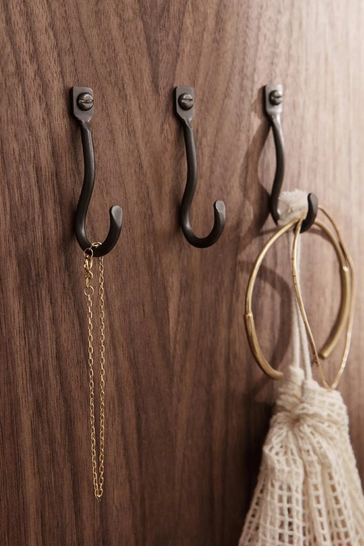 Curvature-knagger i svart messing fra danske Ferm Living. Curvature-serien er en samling håndlagde kroker og oppheng av messing i naturlige former. De er praktiske til oppheng av håndklær, klær og andre saker med en liten hank. Passer like godt på badet, soverommet, kjøkkenet eller i gangen. Alle knaggene er laget for hånd og derfor er ingen helt like.