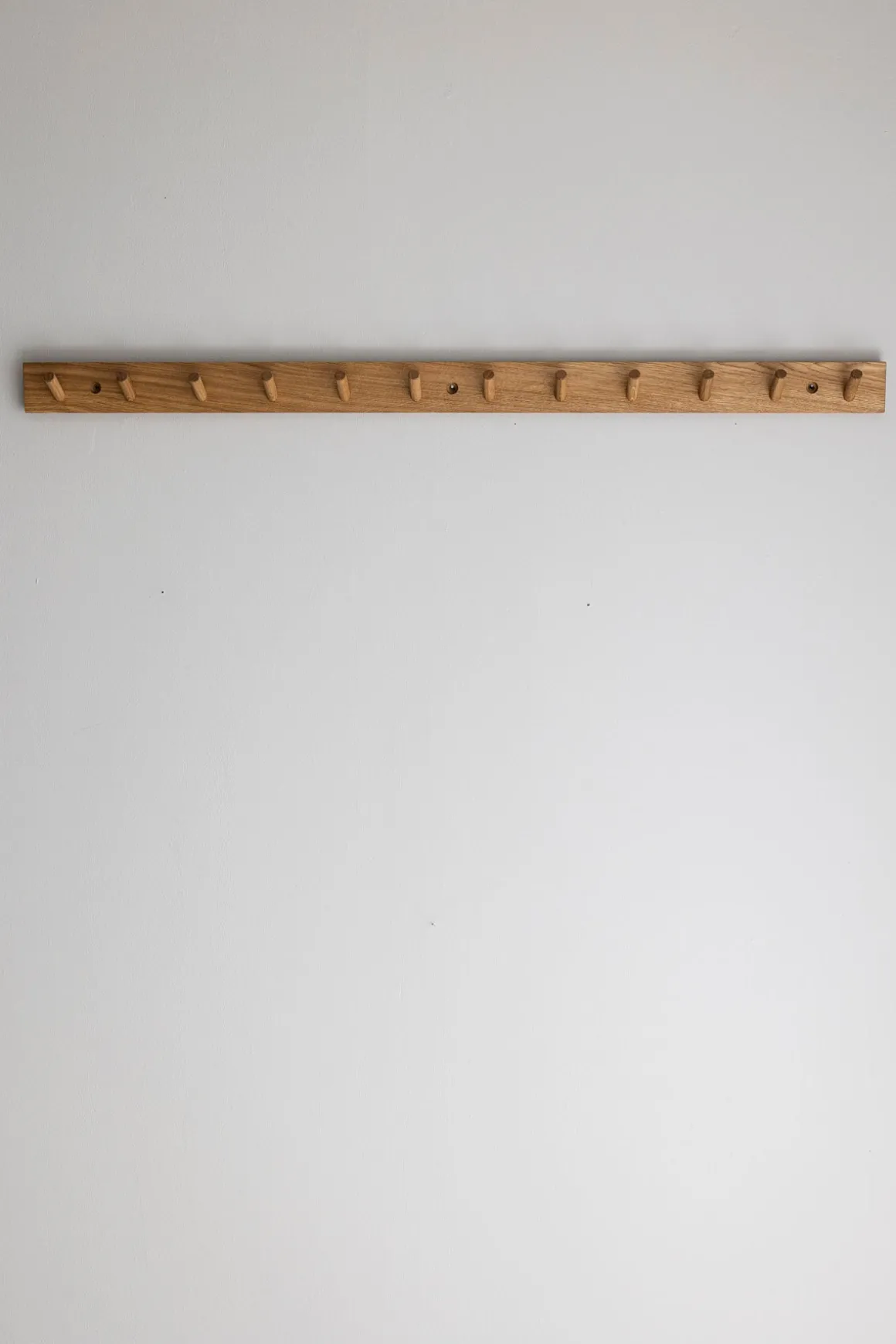 Minimalistisk og praktisk knaggrekke med 12 knagger fra tyske Raumgestalt i 100% eik. Bruk den i gangen, på kjøkkenet eller på soverommet. Passer like godt hjemme som på hytta.