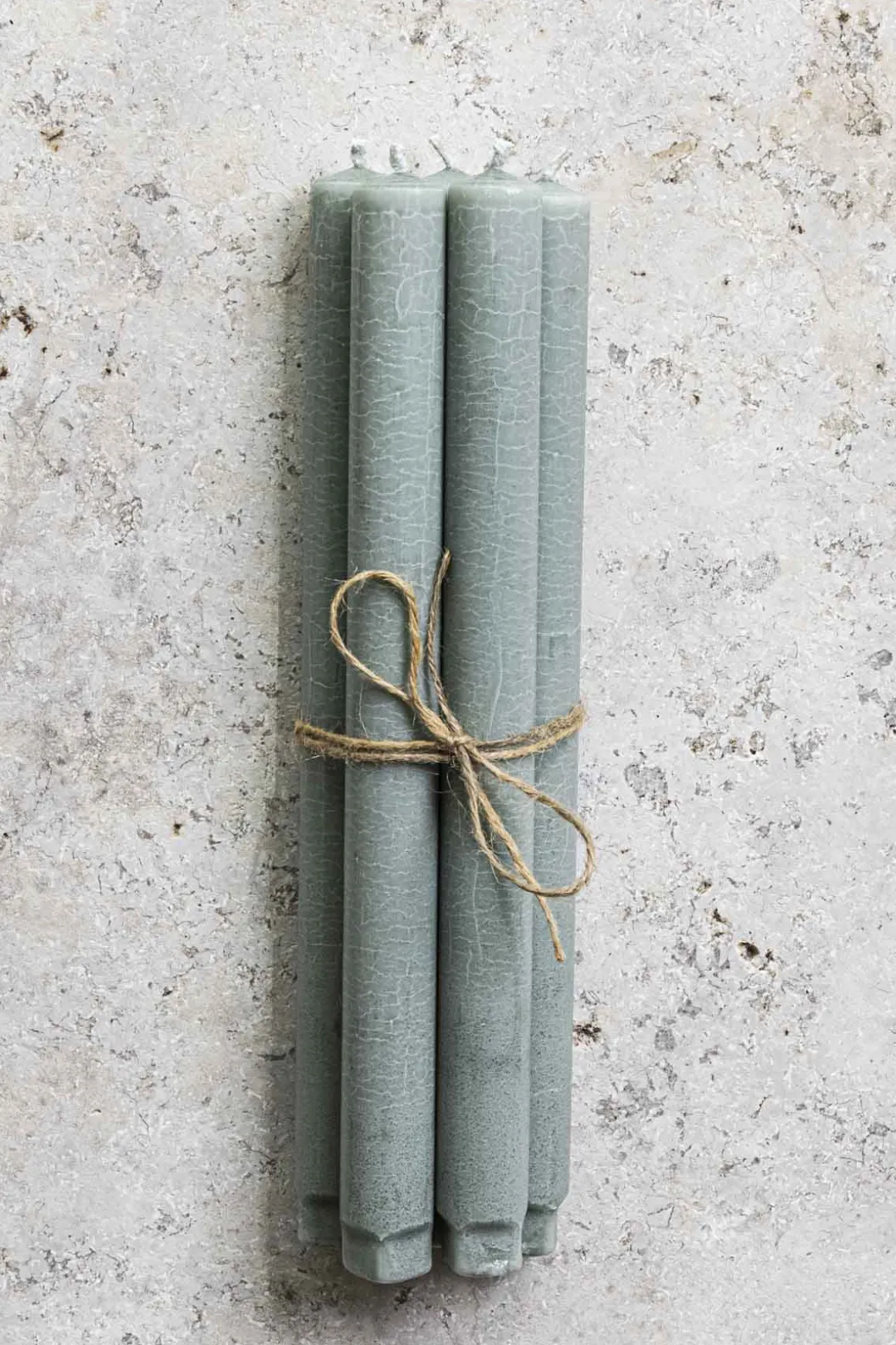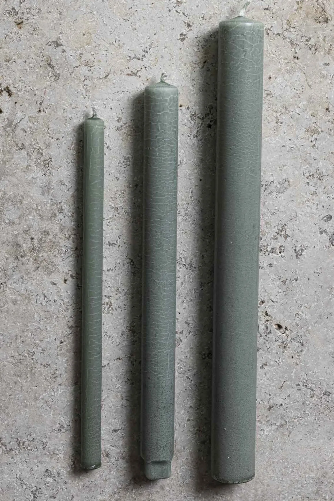 Stearinlys fra danske Lysstøberiet i en dus grønnfarge. Lyset har en flott, matt og rustikk overflate. Det er laget av ren vegetabilsk stearin som gjør at lyset brenner med en klar og rolig flamme. Stearinlyset passer perfekt i en lysestake, og du kan mixe og matche med lys i andre farger og størrelser.