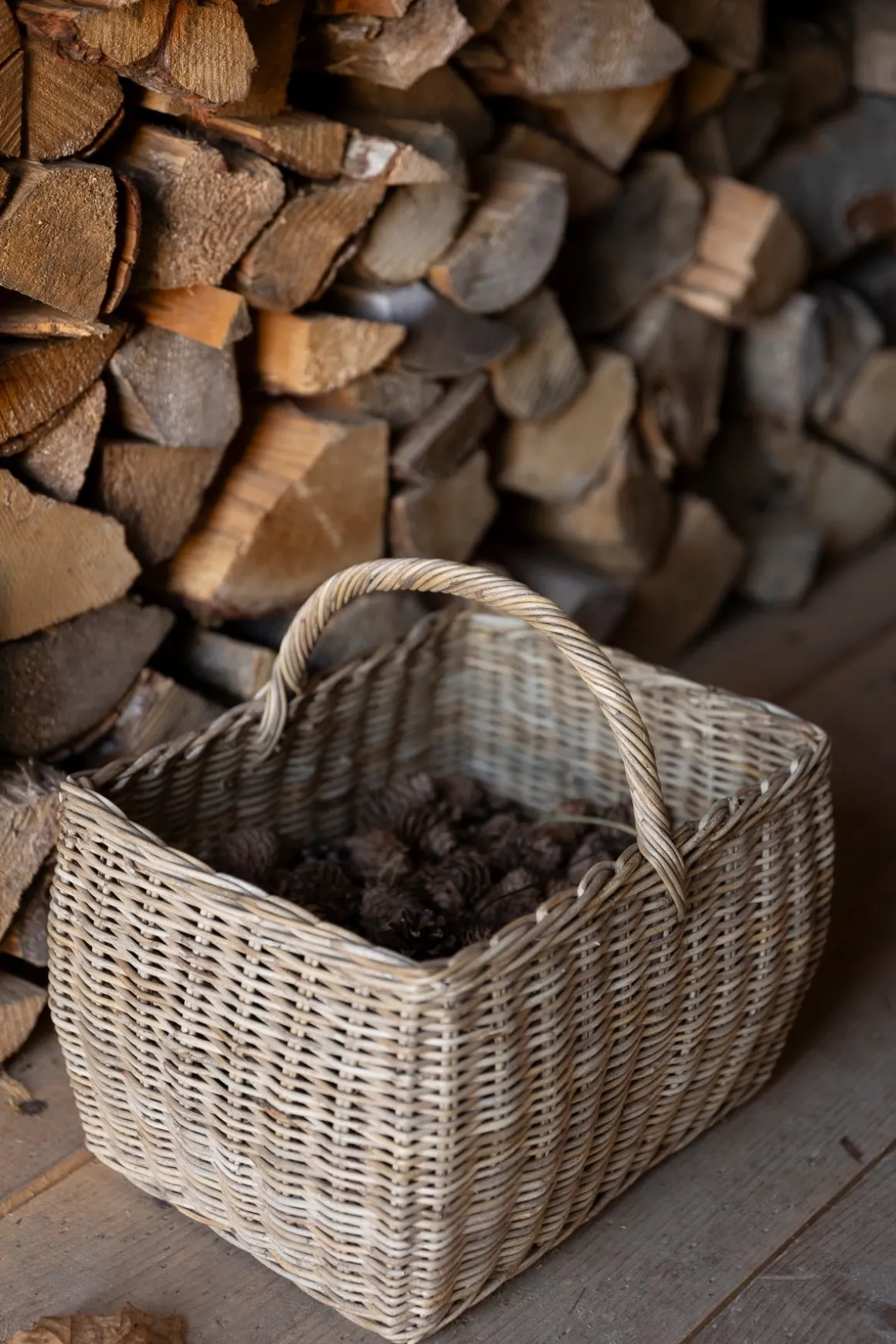 Praktisk og klassisk oppbevaringskurv med håndtak fra svenske Bruka Design i grå rotting. Denne er helt super som piknikkurv, til oppbevaring av leker, strikketøy eller votter og luer. Man kan vel aldri få nok oppbevaringsplass og det samme kan sies om oppbevaringsbokser- og kurver.
