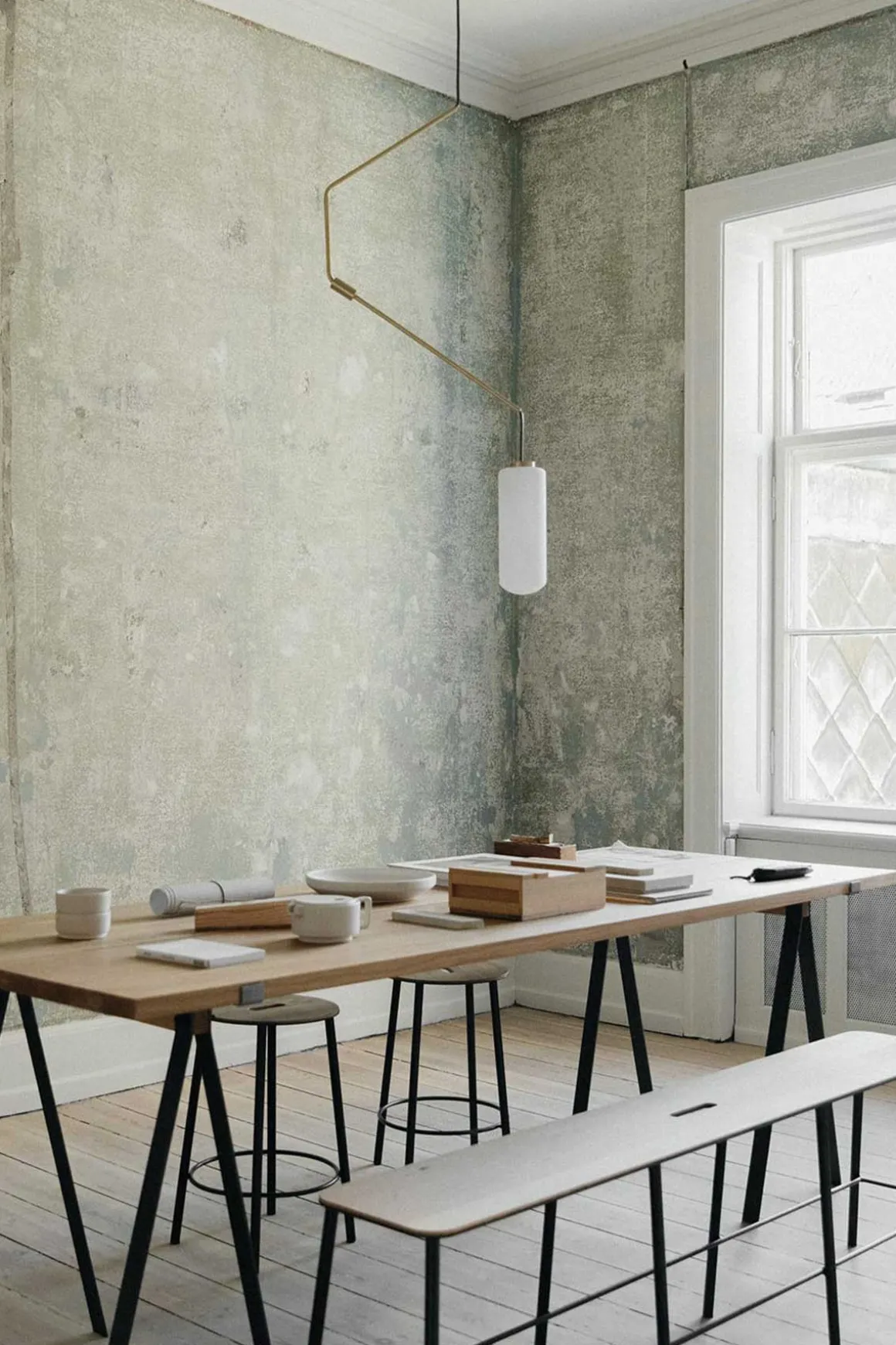 Ventus taklampe en et designsamarbeid mellom Frama og de danske designererne Included Middle. Den opal-hvite glasskuppelen er en vakker kontrast til den slanke messing-strukturen. Ventus har integrert LED-lyskilde og lampen avgir et behagelig, varmt lys.