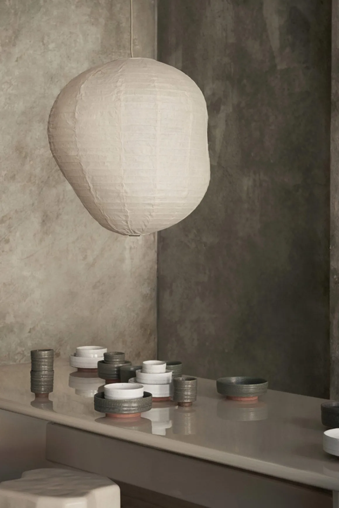 Kurbis lampeskjerm fra Ferm Living. Kurbis er den klassiske rispapirlykten med en sjarmerende vri og er laget av karakteristisk Washi-papir med en organisk og asymmetrisk silhuett som gir den et særegent og unikt utseende. Inspirert av gresskar- og squashfamilien, utstråler den et mykt og mildt lys som tilfører atmosfære og sjarm til ethvert rom. Passer perfekt med pendeloppheng fra Ferm Living. Kurbis kommer i tre størrelser og kan gjerne kombineres i par eller klynger og henges i ulike høyder.