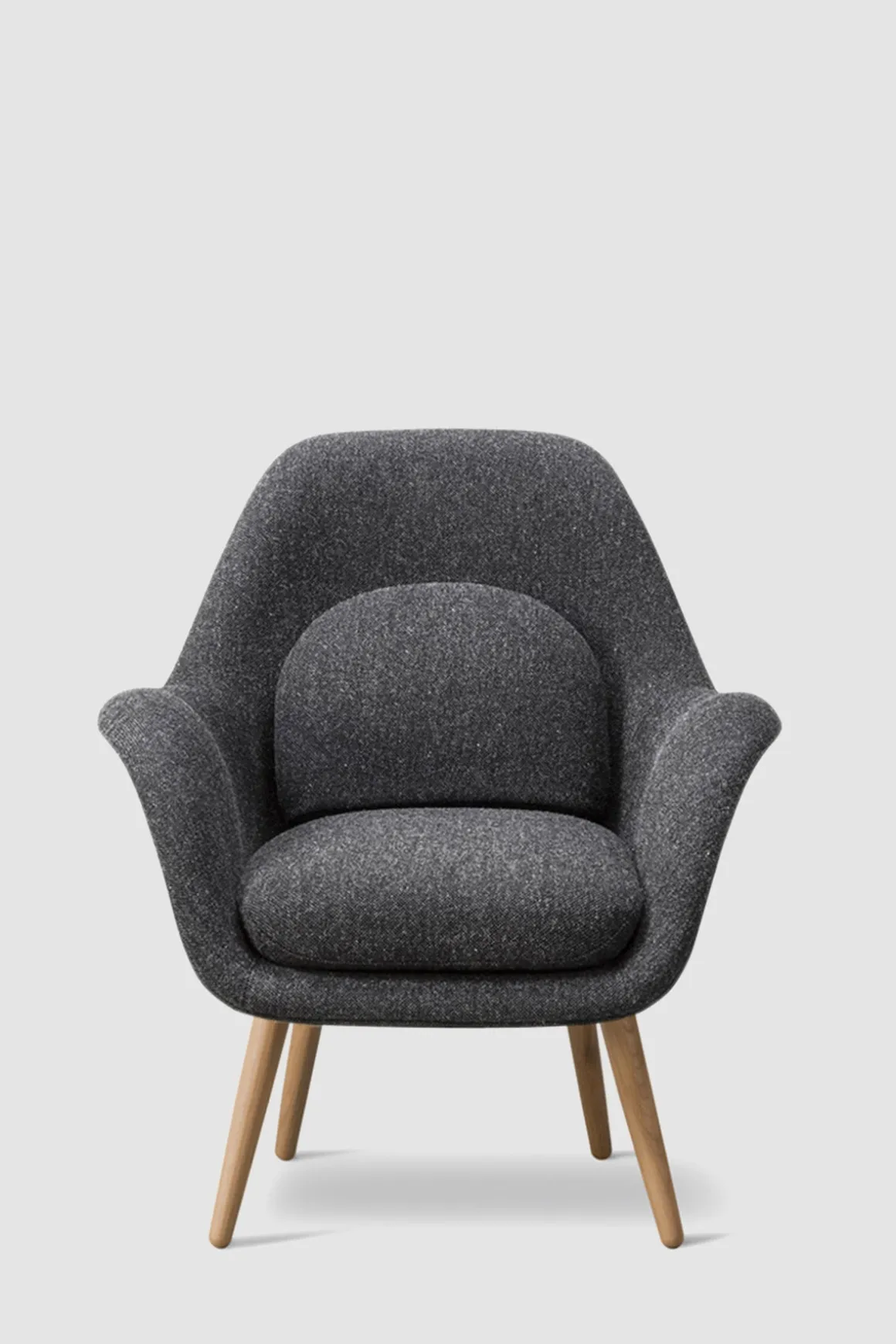 Swoon Petite 1774 lenestol fra Fredericia med base av valnøtt. Utført i det eksklusive stoffet Hallingdal 180, et slitesterkt stoff i koksgrå ull- og viskoseblanding. Stoffet har rik tekstur med god holdbarhet og fleksibilitet. Med det enestående trekket som smelter sammen armlenene, setet og ryggen, i tillegg til støttende, myke puter, har du en moderne og skulpturell stol som passer i alle hjem. Swoon Lounge Petit er en nettere og hakket mer oppreist versjon av sin ikoniske forgjenger Swoon Lounge. Petite versjonen inviterer til total avslapning med sitt imøtekommende design og optimale sittekomfort med god ryggstøtte. Dette er en skandinavisk klassiker du vil få glede av i mange år fremover. I tillegg til diverse tekstiler kan du velge mellom base i flere materialer og stiler. Kom gjerne innom Bolina på Stabekk, hvor vi står klare med tekstilprøver og kan hjelpe deg med å designe din helt egen ‘drømme Swoon’.