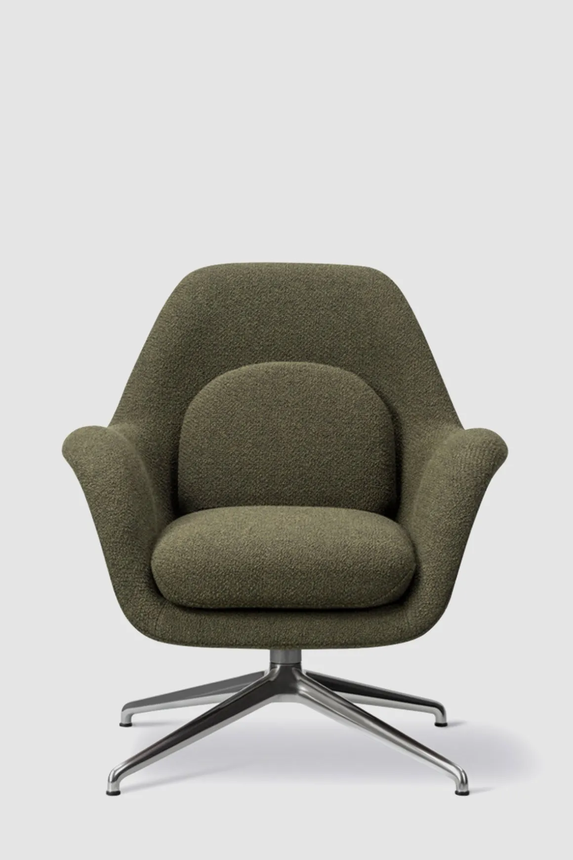 Swoon Petite 1776 svingstol har ben i stålgrått metall og er utført i det eksklusive stoffet Carlotto 900, et slitesterkt og mykt tekstil i mørkegrønn ullblanding med himmelsk bouclé tekstur. Det enestående trekket smelter sammen armlenene, setet og ryggen i ett. Swoon har også støttende, myke puter, som gir deg en moderne og skulpturell stol som passer i alle hjem. Swoon Lounge Petit er en nettere og hakket mer oppreist versjon av sin ikoniske forgjenger Swoon Lounge. Petite versjonen inviterer til total avslapning med sitt imøtekommende design og optimale sittekomfort. Dette er en skandinavisk klassiker du vil få glede av i stuen, på kontoret eller ved spisebordet. I tillegg til diverse stoffer kan du velge mellom baser i flere materialer og stiler. Kom gjerne innom Bolina på Stabekk, hvor vi står klare med tekstilprøver og kan hjelpe deg med å designe din helt egen ‘drømme Swoon’.