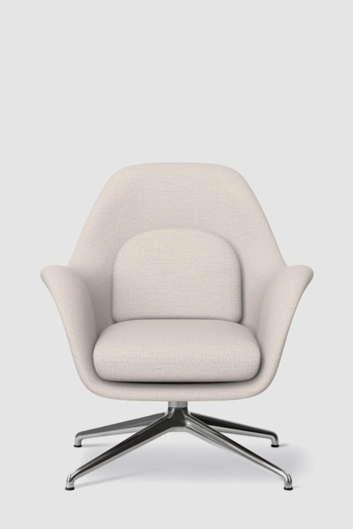 Swoon Petite 1776 svingstol har ben i stålgrått metall og er utført i stoffet Sunniva 717, et slitesterkt tekstil vevet i to toner av ull som gir en rik sandfarge. Stoffet lages i et flatt, tweed-lignende mønster som får en herlig og litt blank finish fra tilsetningen av en liten mengde polyamid.Med det enestående trekket som smelter sammen armlenene, setet og ryggen, i tillegg til støttende, myke puter, har du en moderne og skulpturell stol som passer i alle hjem. Swoon Lounge Petit er en nettere og hakket mer oppreist versjon av sin ikoniske forgjenger Swoon Lounge. Petite versjonen inviterer til total avslapning med sitt imøtekommende design og optimale sittekomfort. I tillegg til diverse stoffer kan du velge mellom baser i flere materialer og stiler. Kom gjerne innom Bolina på Stabekk, hvor vi står klare med tekstilprøver og kan hjelpe deg med å designe din helt egen ‘drømme Swoon’.