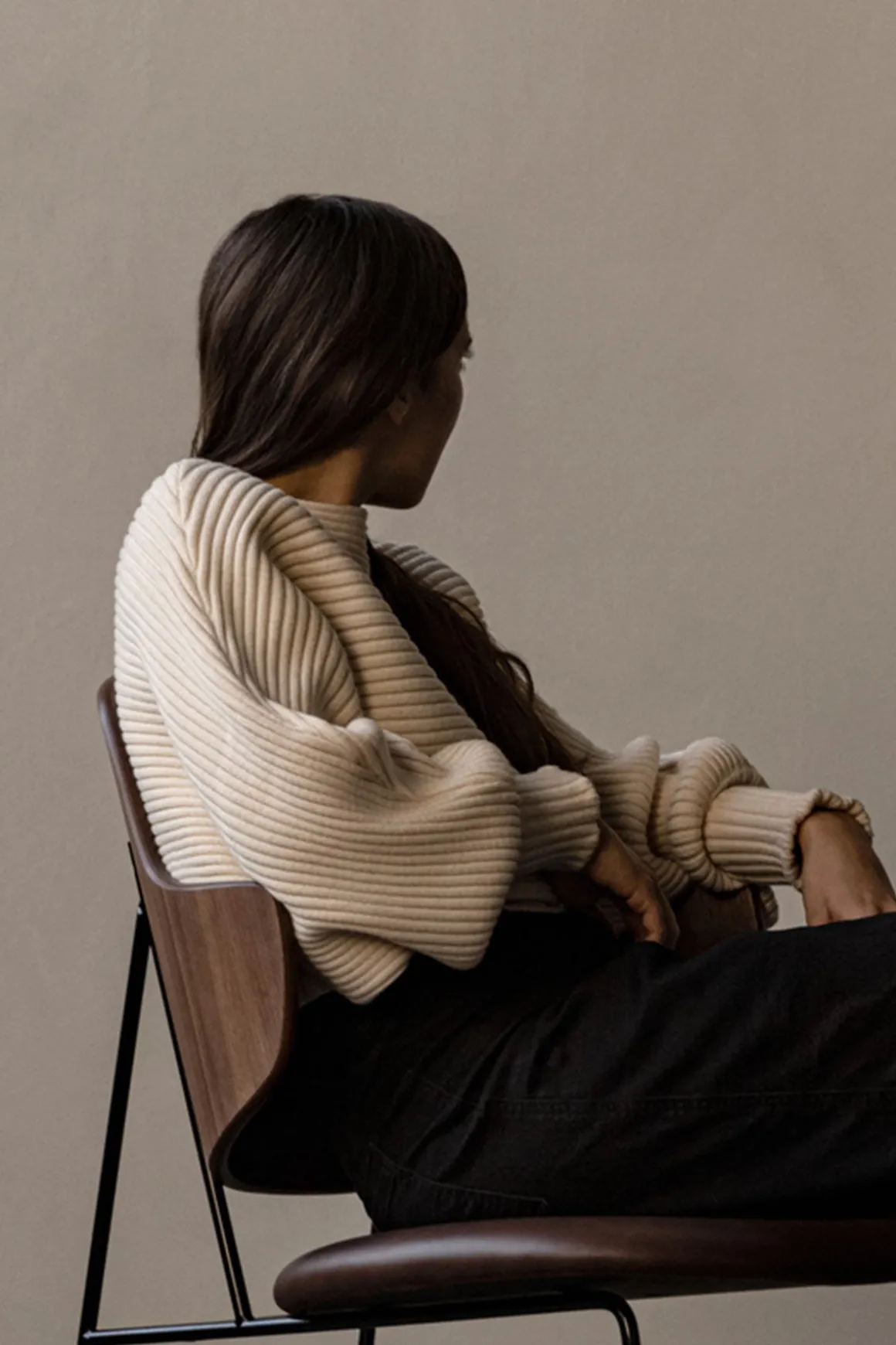 klassisk, skulpturell og kunstnerisk og ble en bestselger fra midten av århundret, og er like populær den dag i dag. Navnet Penguin kommer fra stolens lekne form: stolen er som om en liten pingvin som er i ferd med å omfavne deg når du setter deg ned. Pingvinformede svømmeføtter på baksiden av stolen er typisk for Ib Kofod-Larsens estetiske tilnærming og organiske enkelhet. Da han designet stolen, var komfort en prioritet. Den buede ryggen og det vinklede setet omfavner kroppen og gir overraskende høy komfort i det ellers veldig enkle designet. Ryggen blir en del av kroppen som sikrer komfort og støtte samt en unik sitteopplevelse. Proporsjonene med det litt overdimensjonerte setet og ryggen, i kontrast til den petite, delikate rammen, gir en naiv følelse, samtidig som Penguin er en sofistikert stol med personlighet. Penguin Chair er relansert i spisestue-, lounge- og gyngestol, og er laget med en rygg i eik-eller valnøttfinér og med eller uten polstret sete.