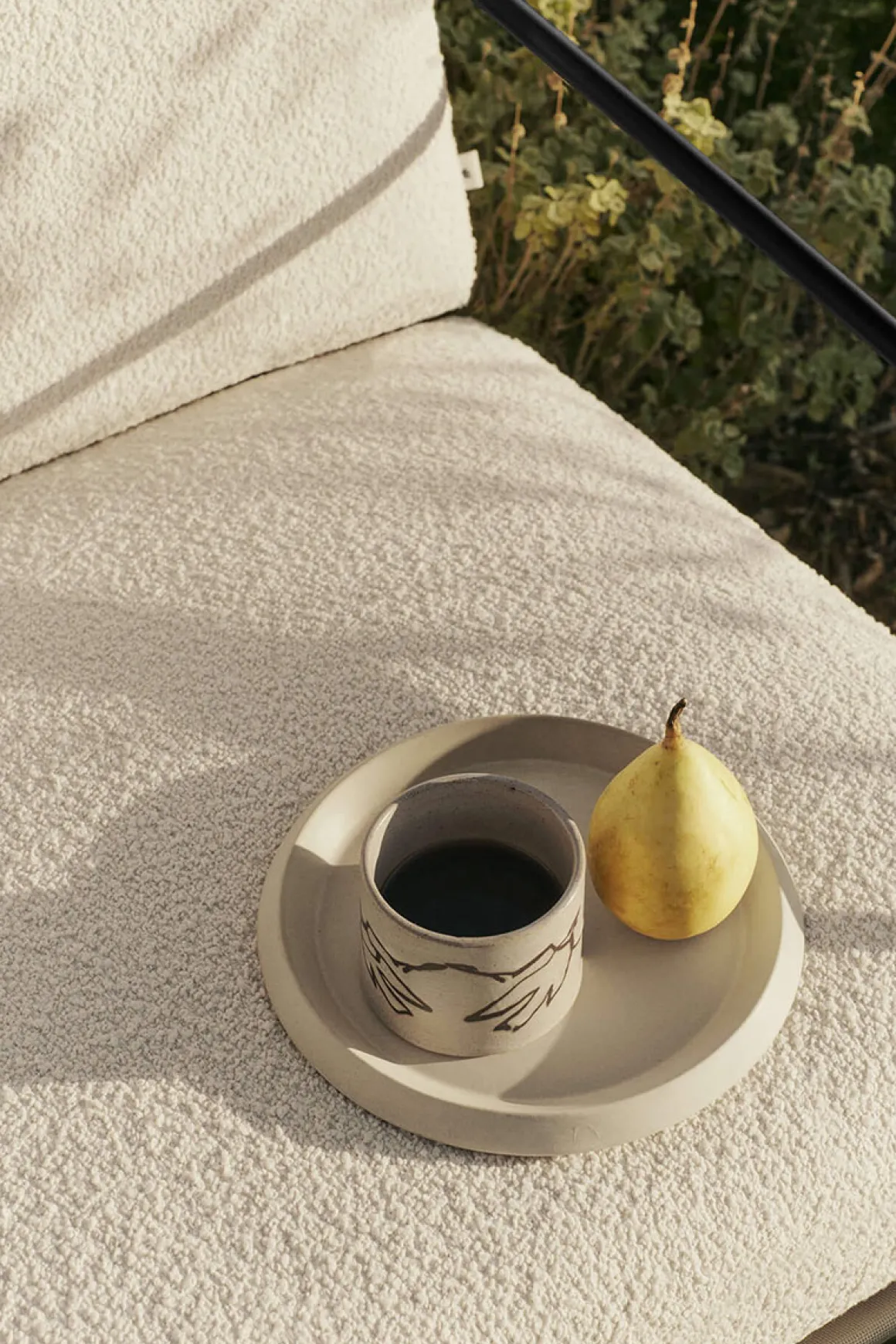 Loungestolen i Desert-serien er en moderne og slitesterk utestol fra Ferm Living, designet for komfort og avslapning utendørs. Den har en solid stålramme med værbestandig pulverlakkering, som gjør den godt egnet for ulike værforhold. Setet og putene er trukket i mykt bouclé-stoff, som både er vann- og UV-bestandig. Med sin behagelige utforming og solide materialer er loungestolen et perfekt valg for alt fra rolige morgenstunder til sosiale sammenkomster i uterommet.