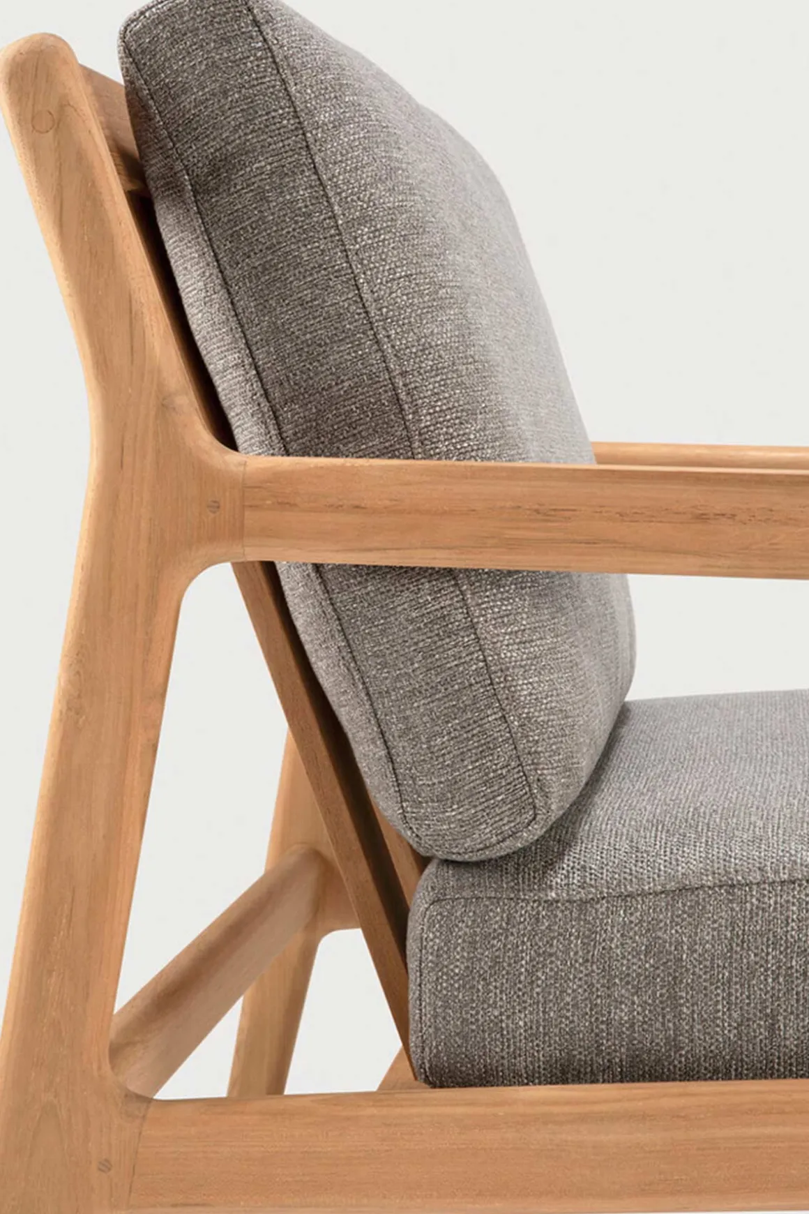 Jack-utestol i teak fra Ethnicraft. Lounge-stolen er enkel med moderne detaljer og solid konstruksjon. Det avslappede og myke uttrykket inviterer deg til komplett avslapning, og sittekomforten sørger for at man aldri vil reise seg opp igjen. De behagelige putene har fyll av hurtigtørkende skum og er trukket med stoff av ypperste kvalitet, vevd i Belgia. Perfekt til ditt uterom hjemme eller på hytta. Kombiner med andre møbler fra Jack-serien for en komplett look.