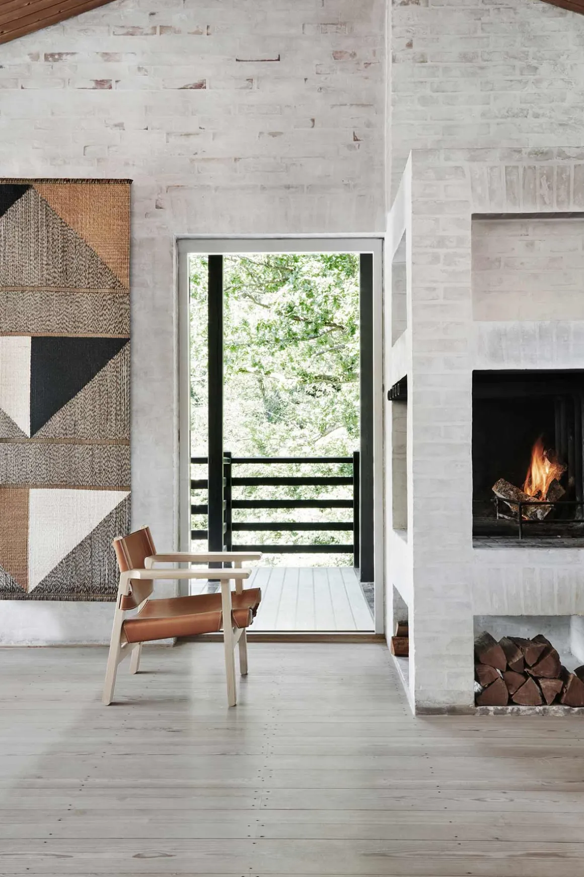 Ikoniske Spanish Chair med stilrent, cognacfarget skinn og understell i såpet eik fra danske Fredericia. Funksjonsdrevet design, nøysomt håndverk, naturlige materialer og vakre, gjennomtenkte detaljer, gjør Spanish Chair til en moderne designklassiker som er like aktuell i dag som da den først ble designet. Børge Mogensen tegnet spanskestolen etter en tur til Spania i 1958 med Hans J. Wegner. Stolen er inspirert av en tradisjonell stol med brede armlener fra området. Han moderniserte formen, men beholdt de karakteristiske, brede armlenene så man lett kan sette fra seg glasset eller kaffekoppen. Materialene brukt i loungestolen er av den høyeste kvalitet og utførelse; fra kvartsaget, massiv eik, til vegetabilsk farget skinn og messingspenner som sammen gir stolen et enkelt og sterkt uttrykk. Med tiden vil skinnet strekke seg og man kan ta i bruk messingspennene under for å stramme skinnet tilbake til sin opprinnelige form. Stolen vil etterhvert utvikle en vakker patina som gir karakter, og som bare gjør den finere med tiden. De slitesterke og bærekraftige materialene gjør at stolen har svært lang levetid og kan gå i arv. Spanish Chair kan også fås med sort eller natur-skinn og understellet kommer i flere varianter: såpebehandlet, oljet, lysoljet, røkt og oljet, lakkert eller sortlakkert eik.