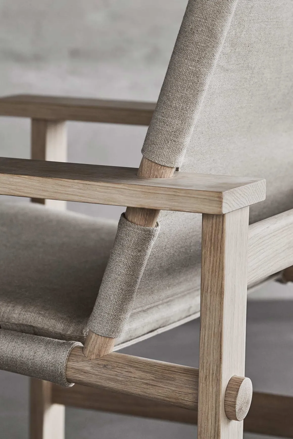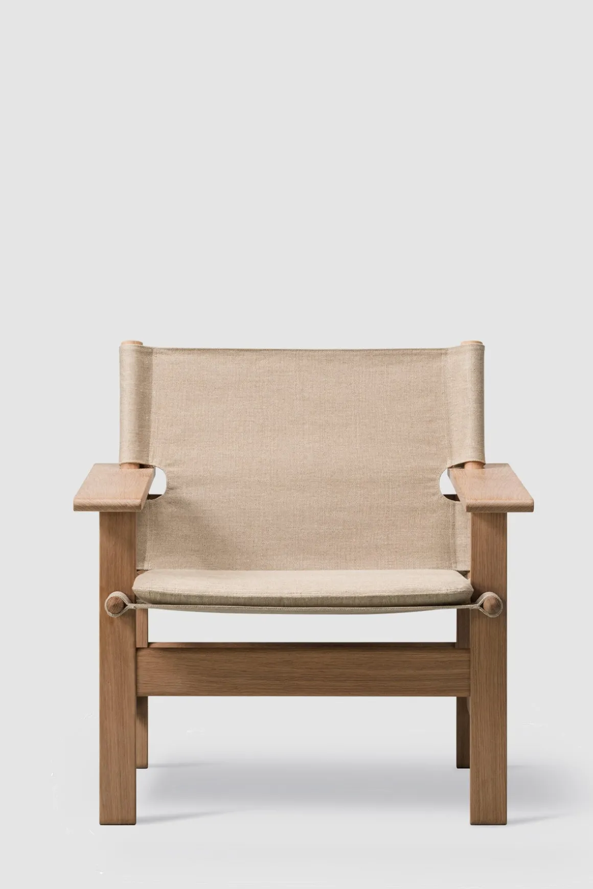Canvas Chair fra Fredericia, designet av Børge Mogensen. Canvas Chair var et av de siste møblene Mogensen tegnet før hans død i 1972, og har siden forblitt i arkivene – helt til nå. Stolen har et funksjonelt design med fokus på enkle, strukturelle former. Den er laget av naturlige materialer med flatt canvas som sete og rygg, og horisontale og vertikale linjer av såpet eik til rammen. Kombinasjonen gir en fin kontrast og en naturlig følelse av balanse. Canvas-stolen vil passe inn overalt med sitt uformelle design og naturlige materialer. Den er både moderne og klassisk på samme tid, og vil være en stol som kan gå i arv i generasjoner. Sittepute følger med.