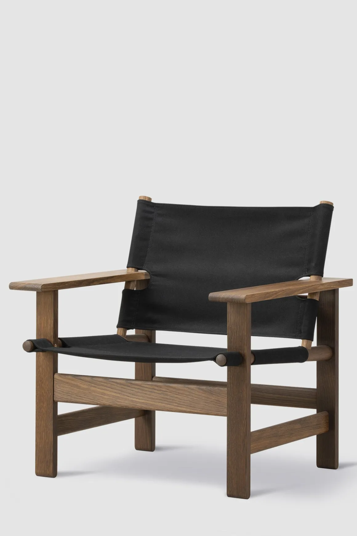 Canvas Chair fra Fredericia, designet av Børge Mogensen. Canvas Chair var et av de siste møblene Mogensen tegnet før hans død i 1972, og har siden forblitt i arkivene – helt til nå. Stolen har et funksjonelt design med fokus på enkle, strukturelle former. Den er laget av naturlige materialer med flatt canvas som sete og rygg, og horisontale og vertikale linjer av røkt, oljet eik til rammen. Kombinasjonen gir en fin kontrast og en naturlig følelse av balanse. Canvas-stolen vil passe inn overalt med sitt uformelle design og naturlige materialer. Den er både moderne og klassisk på samme tid, og vil være en stol som kan gå i arv i generasjoner. Sittepute må kjøpes utenom.