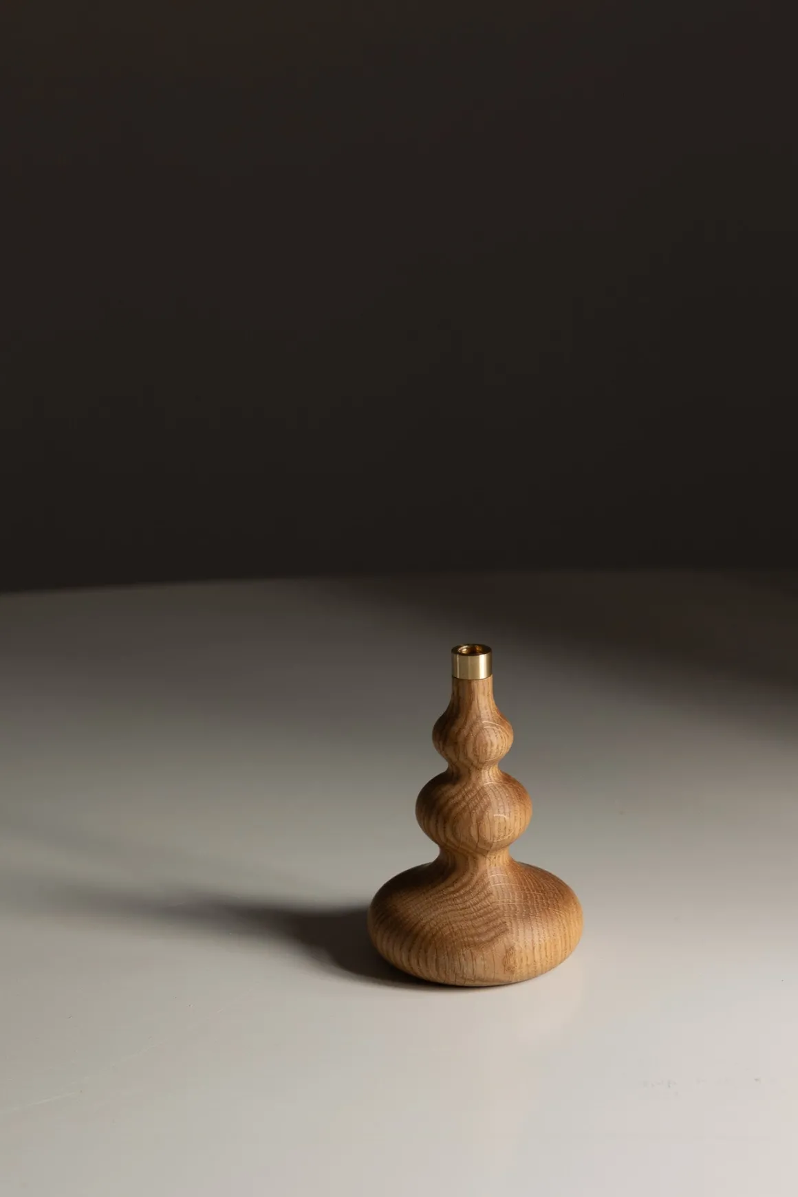 Lysestake i oljet eik fra OVO Things som bringer varme og sjarm til hjemmet. Lysestaken er hånddreid av eik på et snekkerverksted i Litauen, laget av treverk som er rester fra møbelproduksjon. De naturlige variasjonene i treets farge og mønster gir hver lysestake sitt unike preg. Dette er en nydelig detalj som skaper en koselig stemning i hjemmet, enten alene eller sammen med flere. Passer til lys med diameter på 0,5-1 cm.