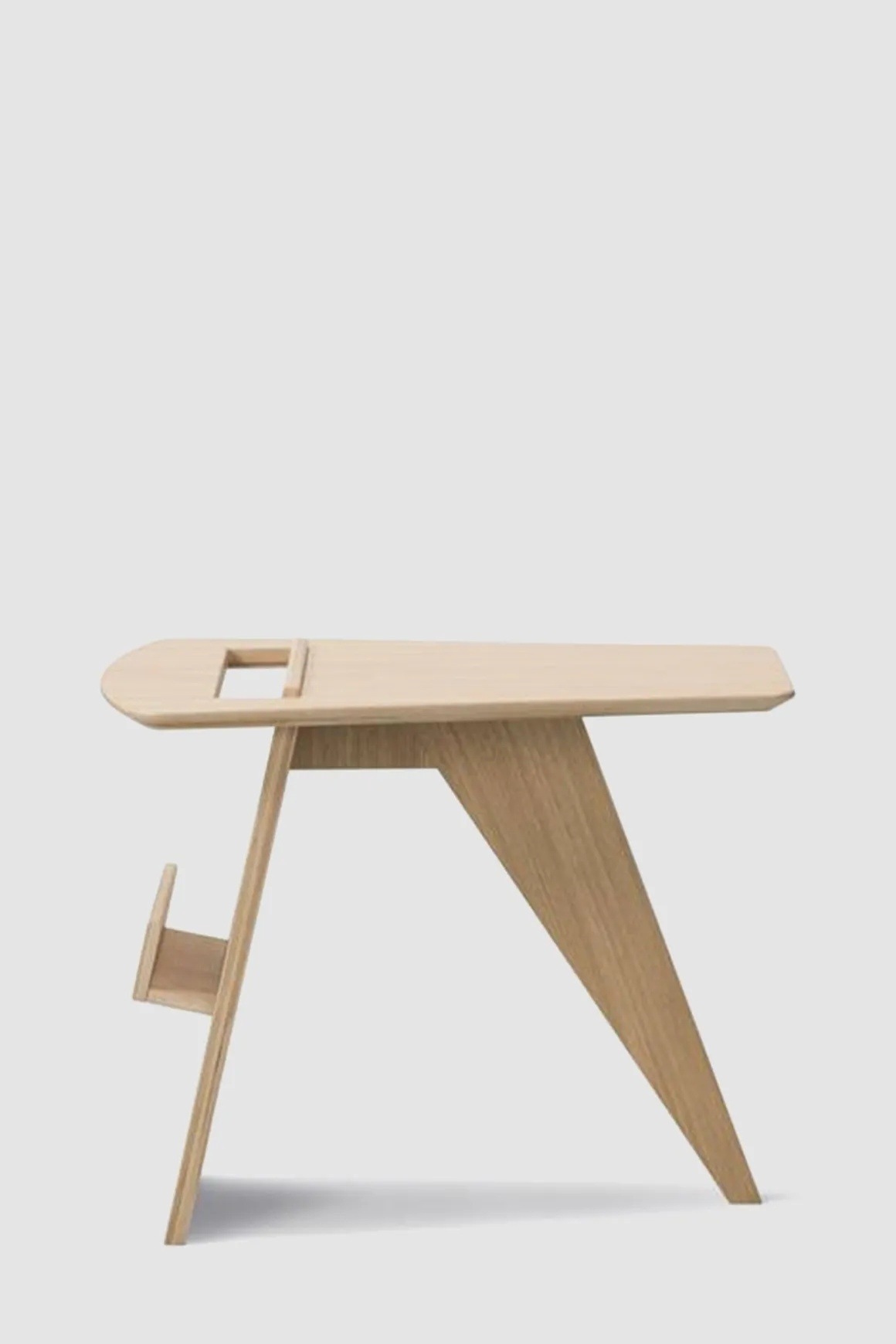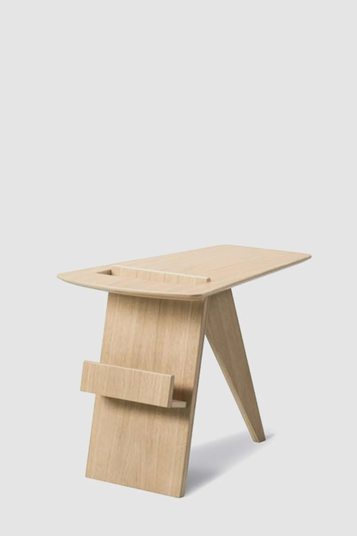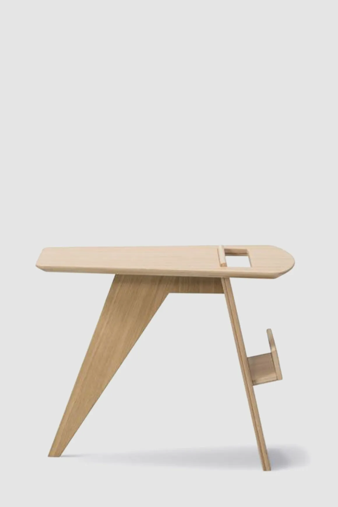 Magazine Table ble designet av danske Jens Risom i 1949. Bordet gjenspeiler Risom’s tanker rundt at kjernen til god design er komfort, varmen fra treverk sammen med en grasiøs stil. I lakkert eik, kombinasjon av myke linjer og nøye utformede utskjæringer, er dette et perfekt sidebord med plass til lesestoff og en kaffekopp. En virkelig designklassiker! Bordet passer fantastisk fint ved siden av Calmo Sofa eller Swoon stolene fra samme merke.