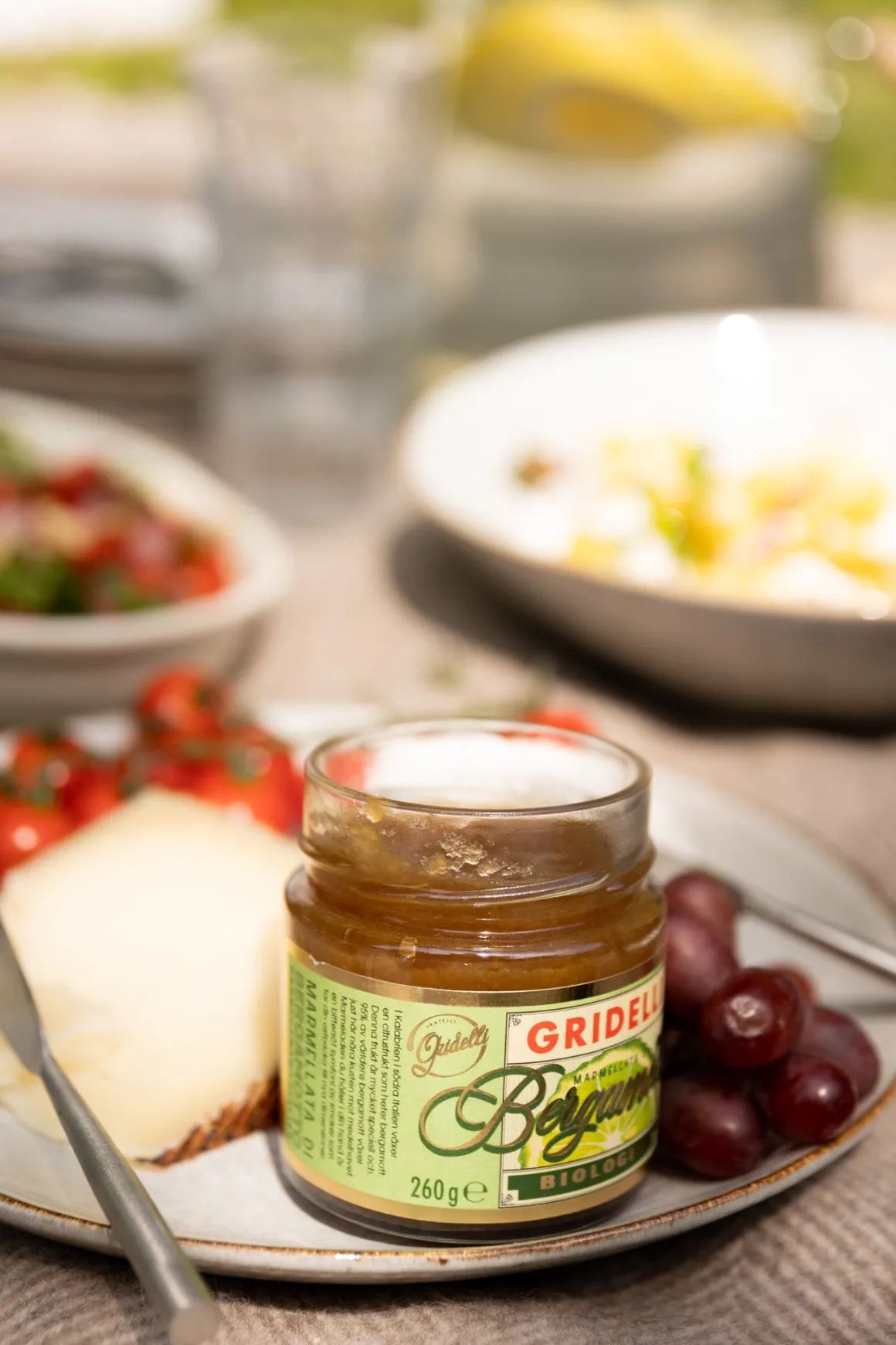 Bergamott-marmelade fra svenske Gridelli. Bergamott er ikke noe du finner i alle butikker, men den er en del av sitrusfamilien. Man kan se på bergamott som en blanding av appelsin og sitron, mindre søt enn appelsin, men ikke like bitter som sitron. Uansett, bergamott-marmelade er noe av det beste som finnes!