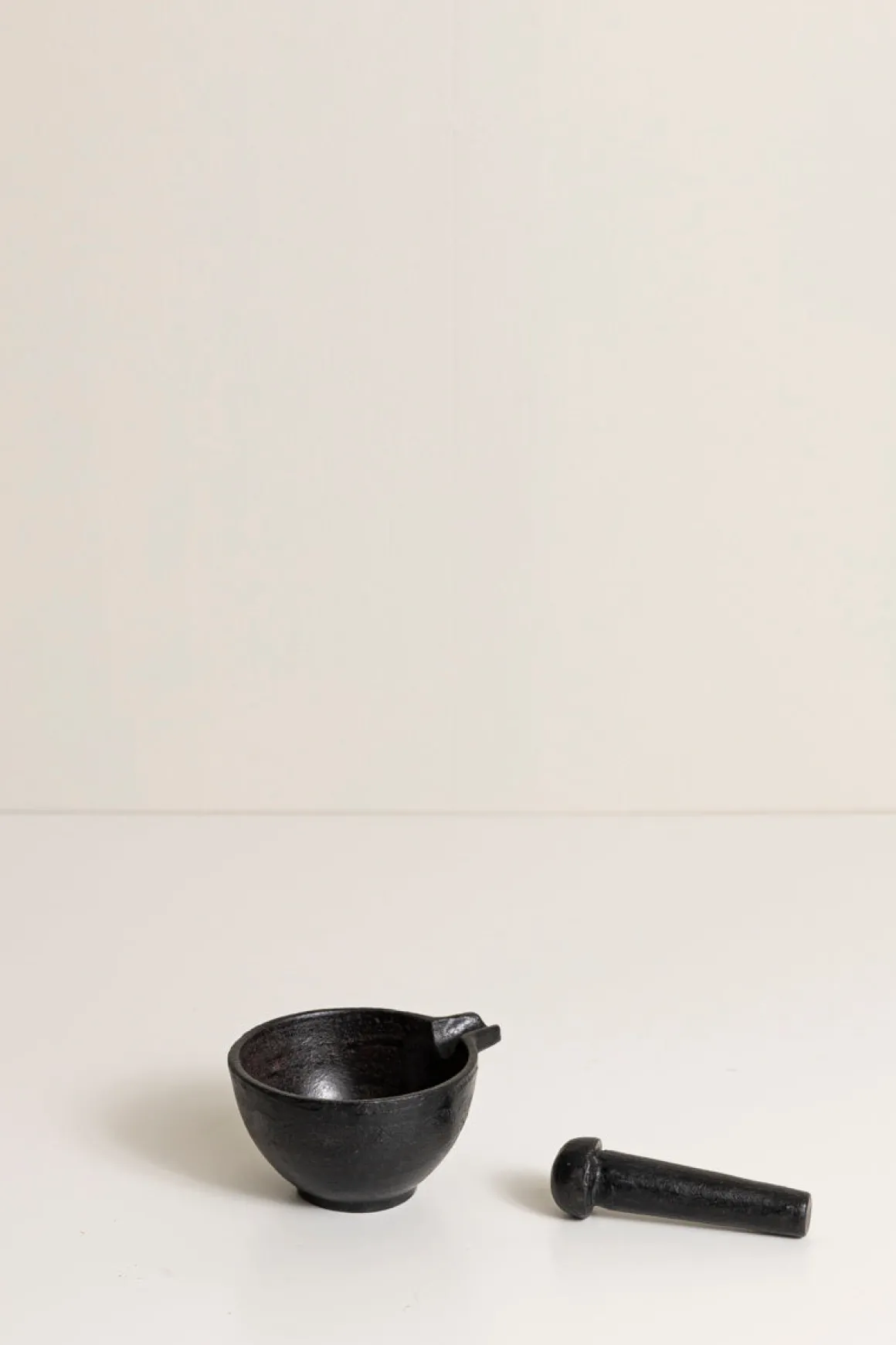 Morter i sort jern fra svenske Bruka Design. En klassiker og must-have på kjøkkenet til knusing av frø, lage dipper, sauser eller krydderblandinger.