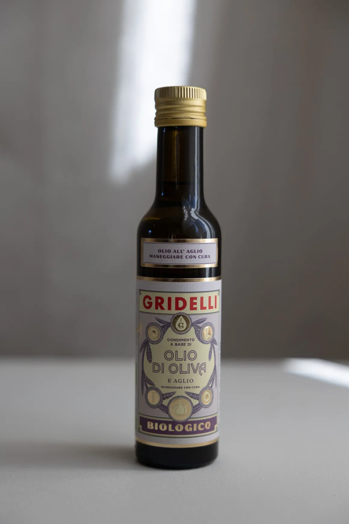 Gridelli Olio al Aglio er en økologisk ekstra virgin olivenolje tilsatt hvitløk for en fyldig og aromatisk smak. Laget av høykvalitets oliven fra Emilia-Romagna, er denne oljen perfekt for å løfte smaker i pasta, sauser, grillede grønnsaker og bruschetta. En smakfull favoritt for hvitløkselskere!