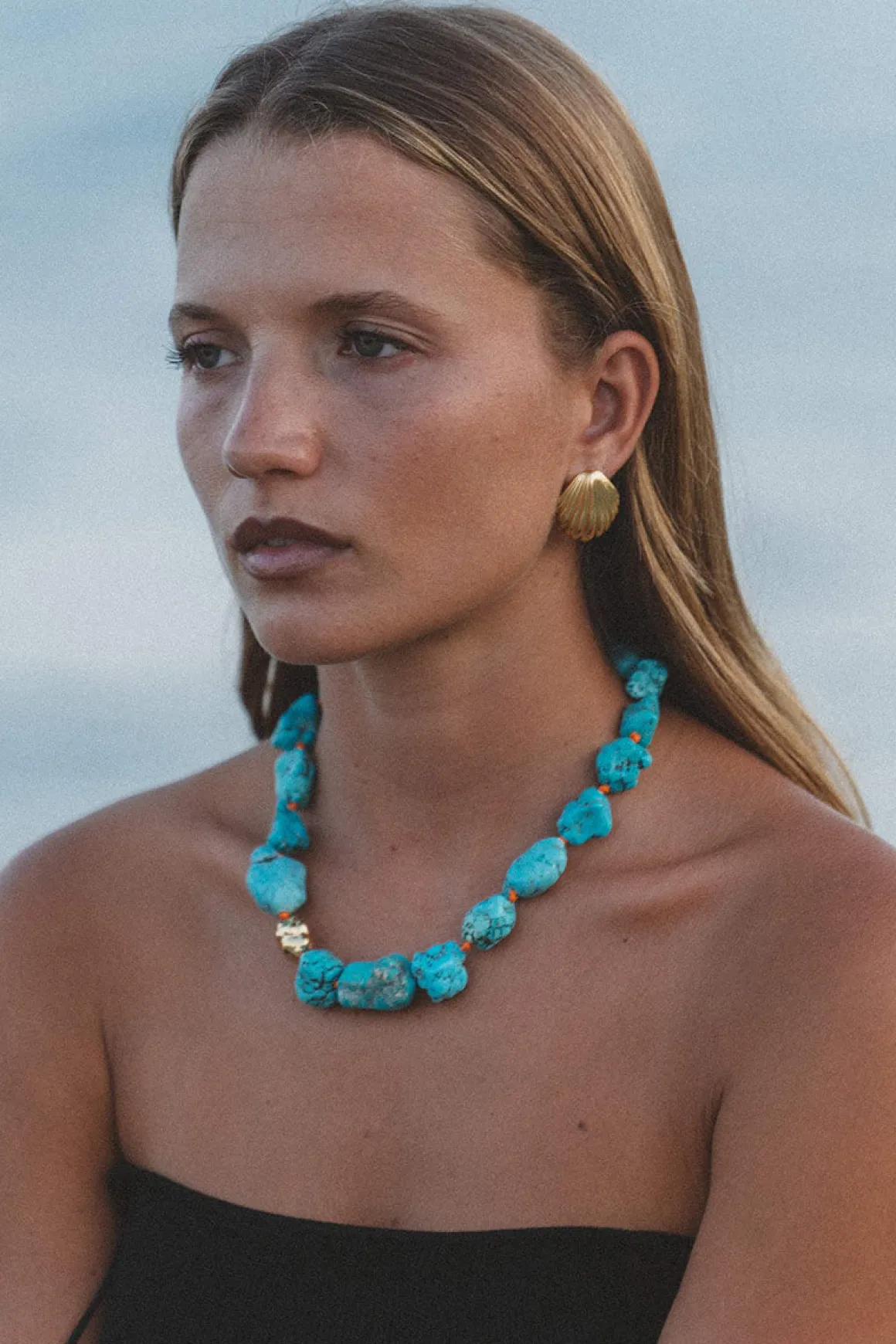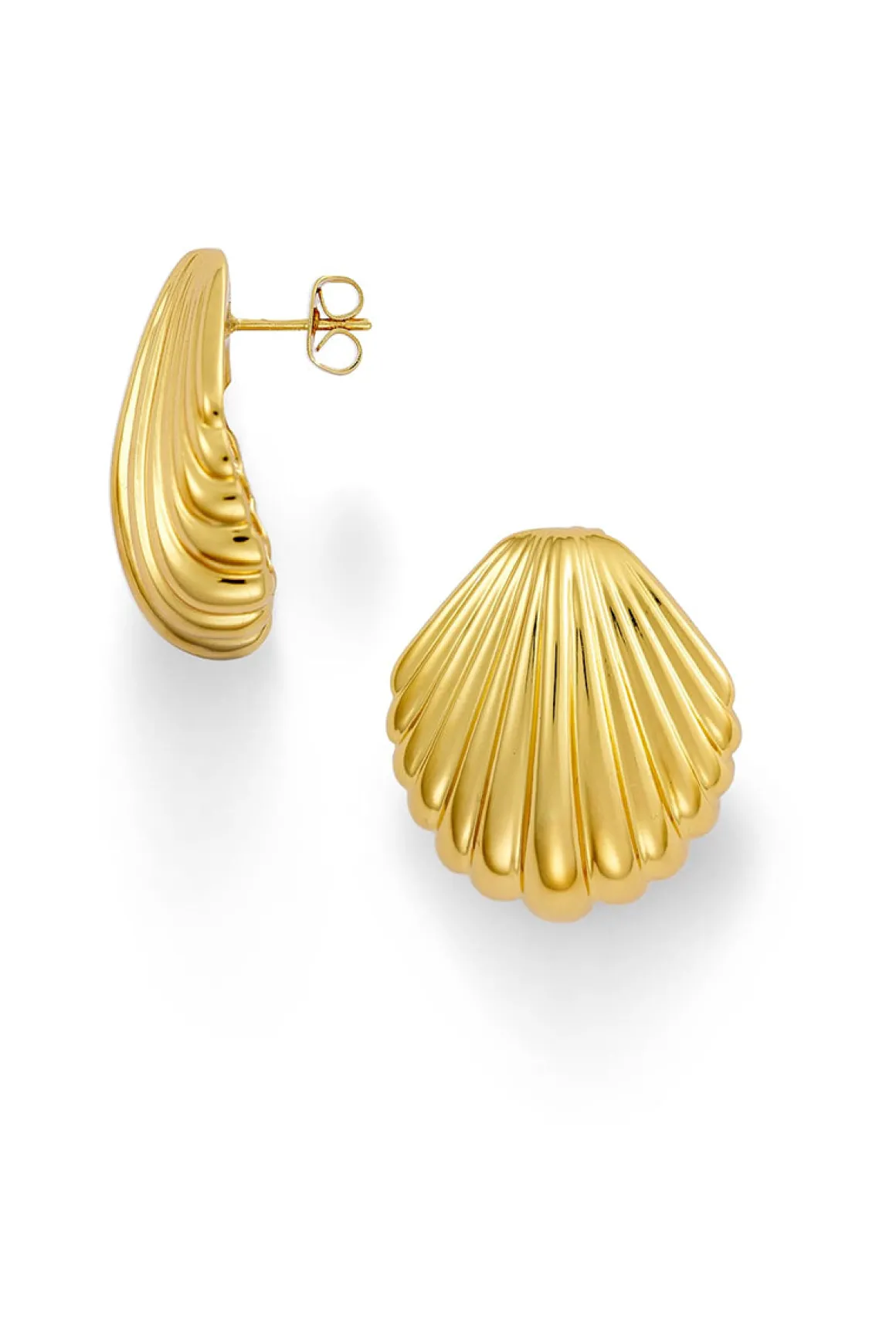 Ocean Treasure fra Anni Lu og Il Mare-kolleksjonen er inspirert av skjellenes vakre former og havets naturlige skjønnhet. De gullfargede detaljene fanger lyset på en subtil måte og tilfører et hint av havets magi til ethvert antrekk. Disse øredobbene skiller seg virkelig ut.