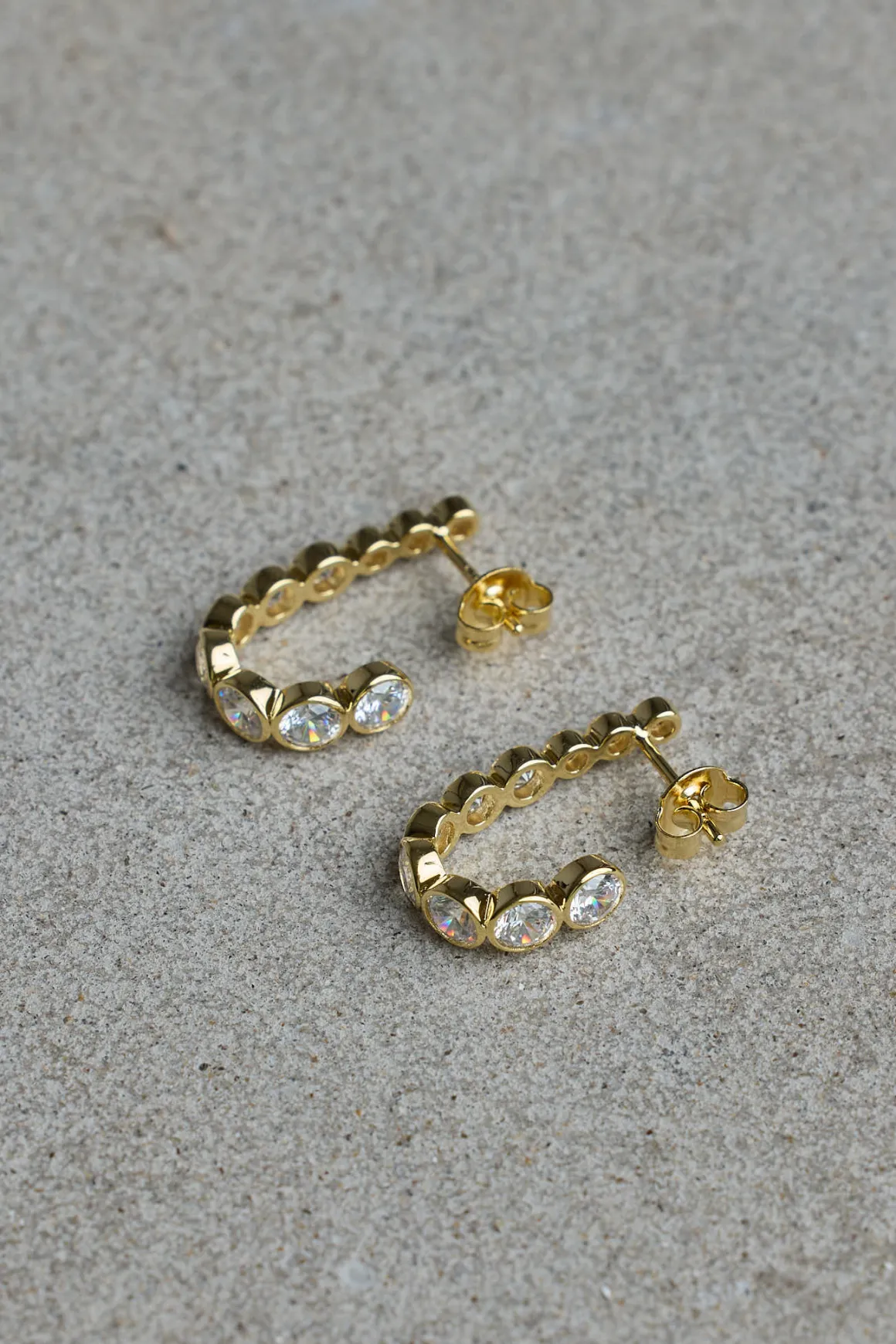 Oda øredobber fra Ragbag. Inspirert av kunst, arkitektur og naturens former, er Oda-øredobbene et eksempel på Ragbag’s moderne tilnærming til tradisjonelt håndverk. Laget av gullbelagt sterlingsølv, smyger de seg lett rundt øret og er utsmykket med glitrende steiner. Med sitt enkle, men iøynefallende design, er disse øredobbene perfekte for både hverdag og spesielle anledninger.